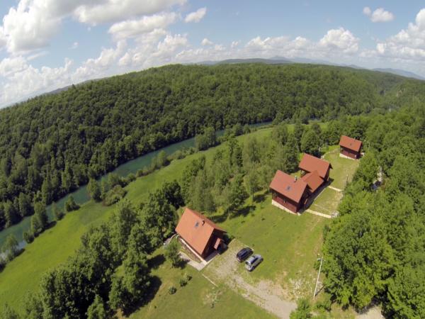 Completamente attrezzate e moderne case vacanza nella natura incontaminata sul fiume Mrežnica. Affittare tre case di legno. Ognuno di essi è 140 m2. Al piano superiore sono tre camere da letto al piano terra soggiorno, cucina e terrazzo. Dopo un bagno al primo piano e piano terra. La cucina è completamente attrezzata. Gli ospiti possono utilizzare la griglia. Oltre alla casa è un parco giochi per il calcio, la pallavolo e badminton. Di fronte ad una grande terrazza è una piscina 10x4 m. Adattare la passeggiata lungo il fiume. Affittiamo kayak e mountain bike. Il cibo può essere ordinato in anticipo.