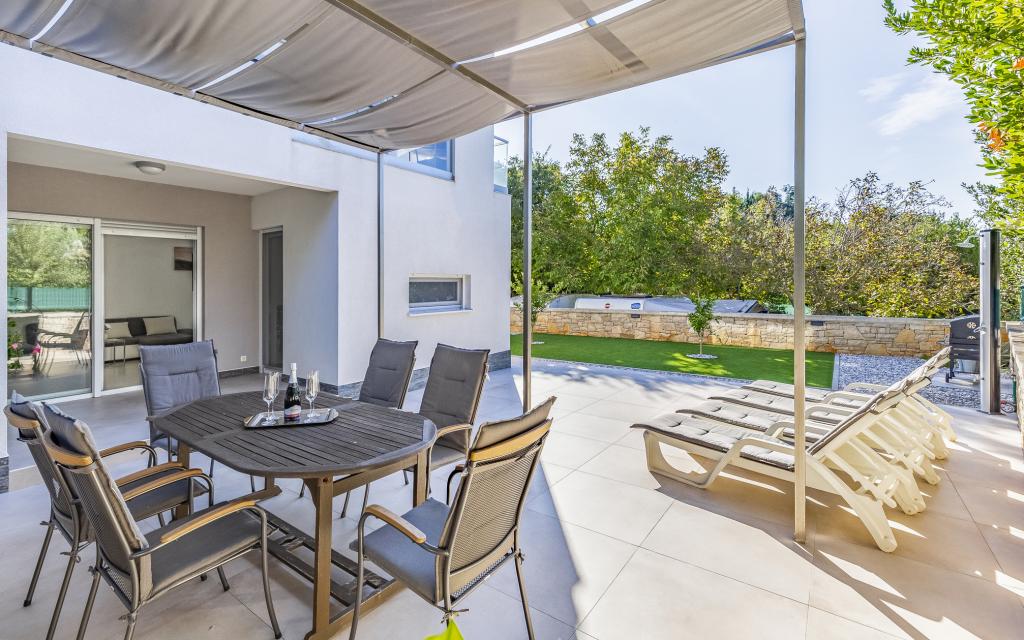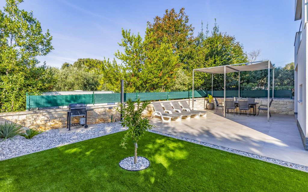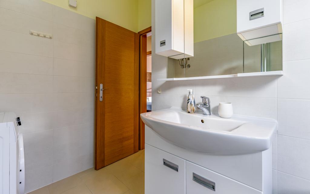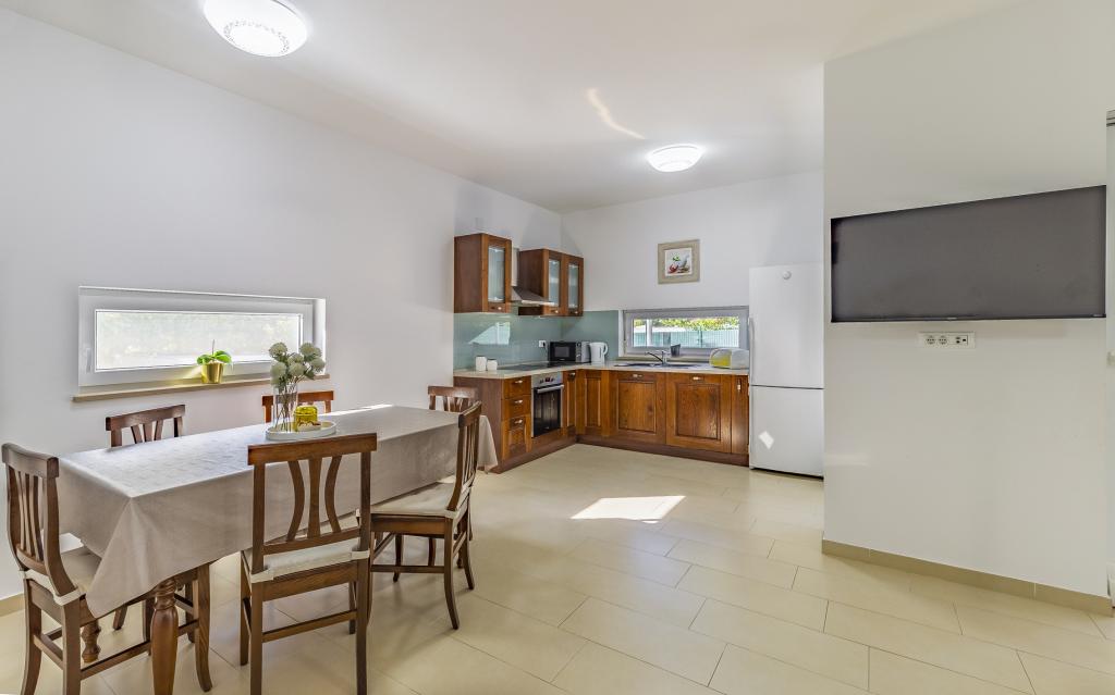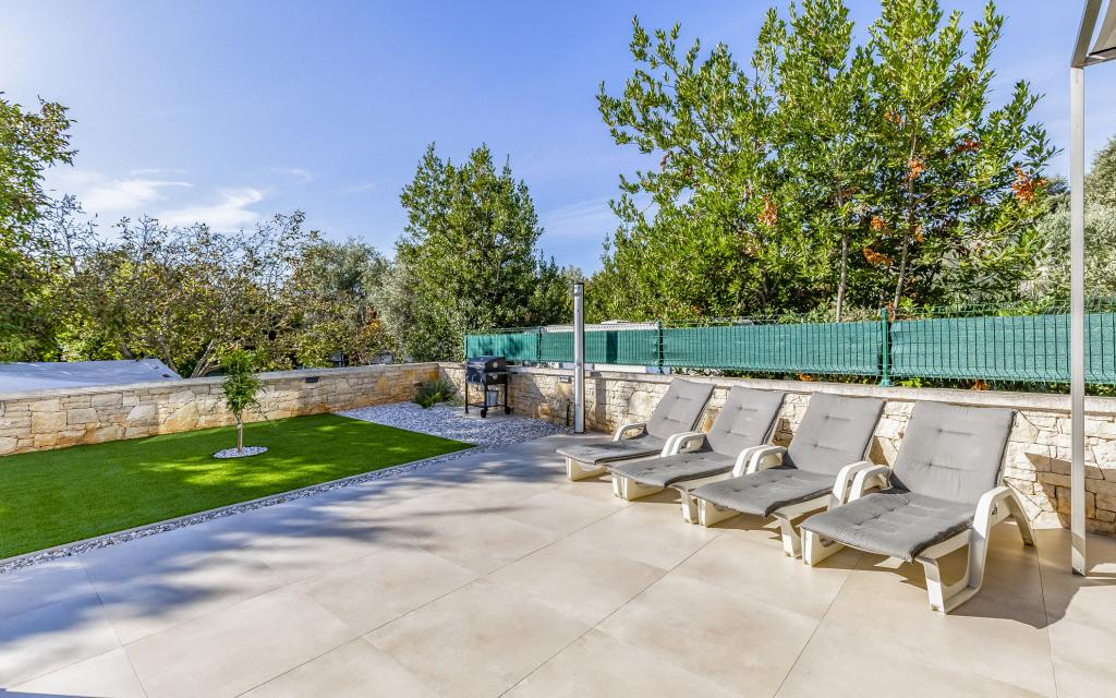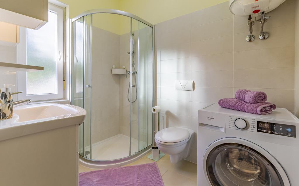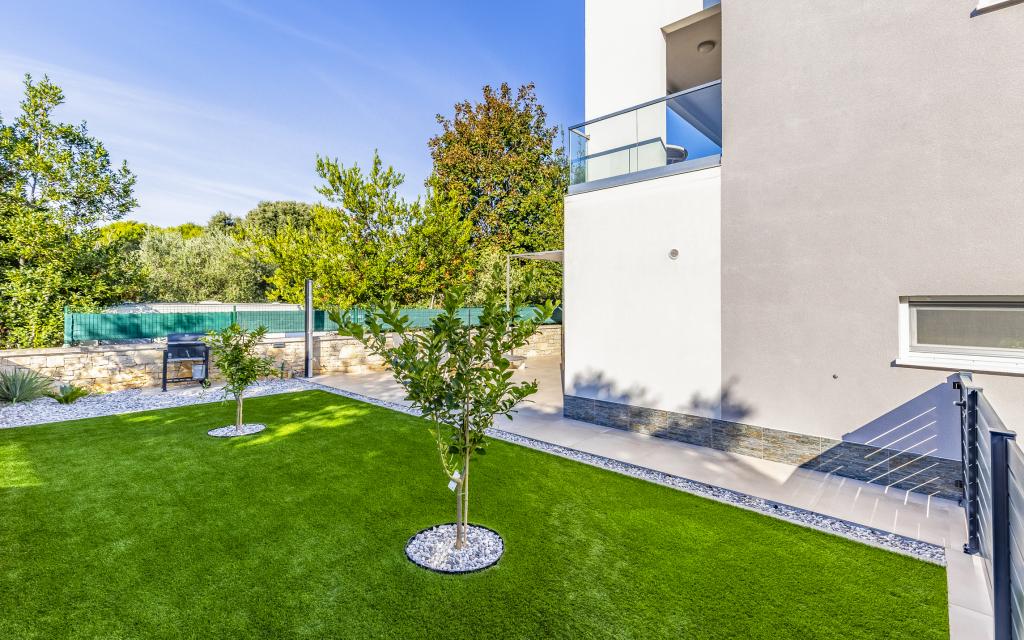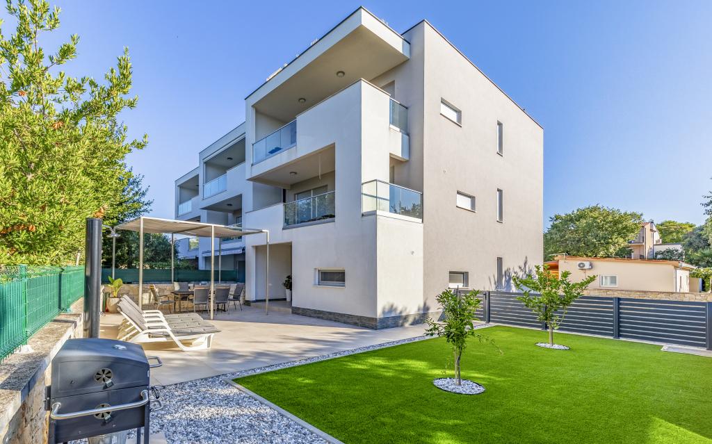 Appartamento (80 m²) completamente arredato e di livello superiore, in una posizione eccellente in una zona tranquilla di Banjol, a soli 5 minuti (300 m) a piedi dalle spiagge più belle della zona. L'appartamento si trova al piano terra di un edificio residenziale con soli tre appartamenti. L'appartamento dispone di un giardino privato (100 m²) con terrazza, tavolo, sedie a sdraio, doccia esterna e barbecue, che consente piacevoli momenti di socializzazione in assoluta privacy ed è particolarmente adatto a famiglie con bambini. Accanto all'edificio si trova un parcheggio privato con accesso diretto al giardino e alla terrazza. Il giardino è stato completamente ristrutturato nel 2024. L'intero edificio è protetto da una recinzione di sicurezza (accesso con tessera magnetica). L'appartamento dispone di 2 camere da letto con letti matrimoniali, 2 bagni con WC e doccia, un ampio soggiorno con divano letto, sala da pranzo e cucina. L'appartamento è climatizzato e riscaldato in inverno (riscaldamento a pavimento) e dispone di un camino interno, quindi è adatto anche per soggiorni nei mesi più freddi dell'autunno e dell'inverno. Nelle immediate vicinanze dell'appartamento si trovano numerosi bar e ristoranti, nonché negozi ben forniti.