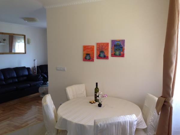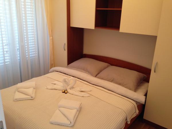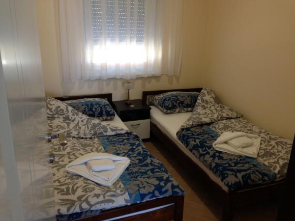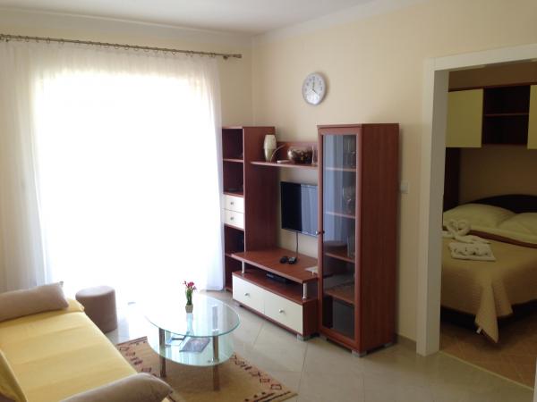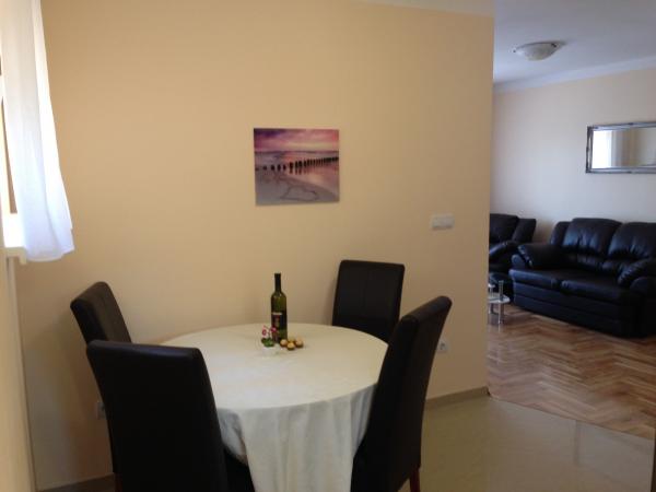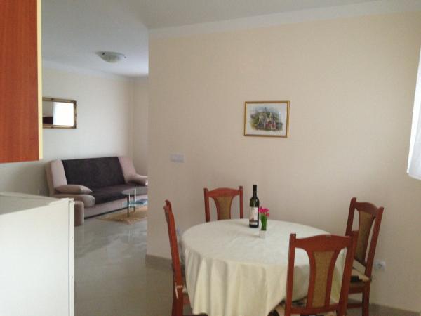 La tassa di soggiorno è inclusa nel prezzo.Gli appartamenti sono composti da ingresso, due camere da letto, soggiorno, cucina, sala da pranzo, bagno e balcone. + Parcheggio. Gli appartamenti sono situati nella parte centrale della città, lontano dal negozio 100 m dalla spiaggia, ristoranti, passeggiate circa 400m. La distanza dal centro della città di Rab (la parte storica della città), è di circa 4 km di distanza, dove ci sono linee regolari di autobus, taxi e taxi boat, e può camminare e nuova passeggiata lungo la costa. Il prezzo comprende: Tassa di soggiorno, internet - (via Wi-Fi), Telefono - (per le emergenze), Cucina - (completamente attrezzata), aria (raffreddamento / riscaldamento) TV-radio (servizio di TV Max con oltre 200 canali premium), cassaforte, biancheria da letto, asciugamani, sapone, utenze, pulizie, ecc