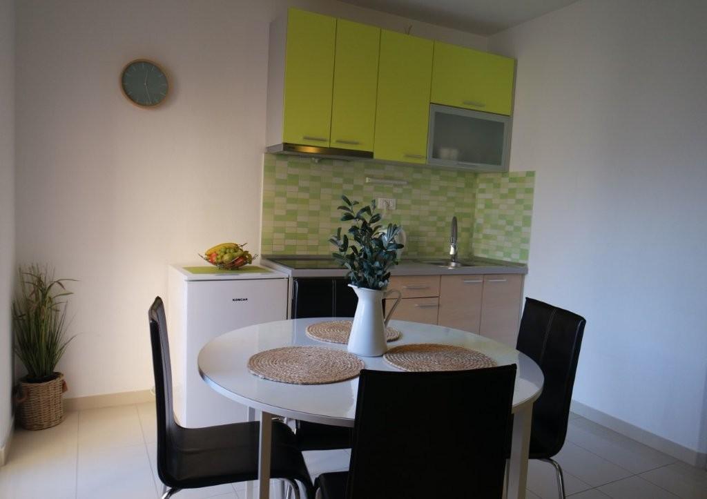 Gli appartamenti Harmonia modernamente attrezzati sono la scelta perfetta per una vacanza in famiglia confortevole o per coppie in cerca di un alloggio confortevole vicino alla spiaggia. A circa 200 metri dalla spiaggia di Nikola, in una bella zona di Baška Voda e non lontano dal centro con una bellissima vista laterale sul mare e sulla montagna Biokovo. Offriamo alloggio in suite verde e arancione per 2 adulti con 2 bambini piccoli e in un appartamento turchese per 2 adulti con ev. 1 bambino. Ogni appartamento ha una superficie di 40 m2, ha una grande camera da letto, un soggiorno che comprende una cucina completamente attrezzata, tavolo e sedie e un divano letto, un bagno e una terrazza. Gli appartamenti verde e arancione si trovano al primo piano della casa di famiglia e dispongono di ampi balconi con vista laterale sul mare, mentre l'appartamento turchese si trova nel seminterrato della casa senza vista sul mare, con una grande terrazza e poltrone lounge. Ogni appartamento è completamente attrezzato, trasuda pulizia e colori vivaci che sicuramente ti faranno sentire a tuo agio e trascorrere una bella vacanza.