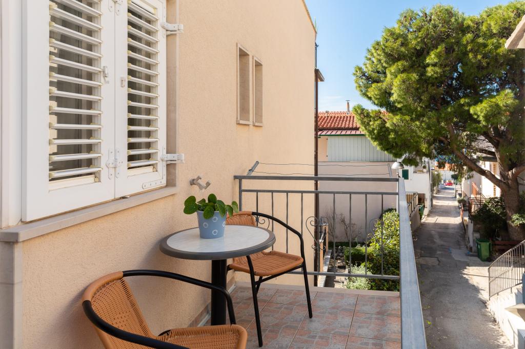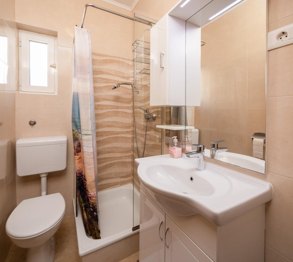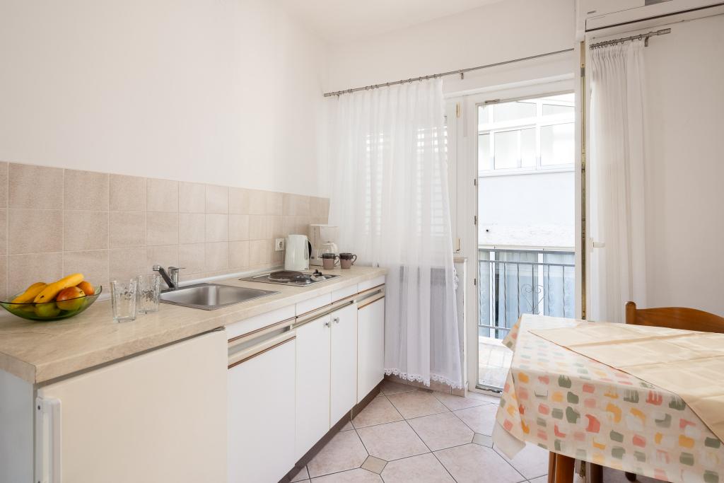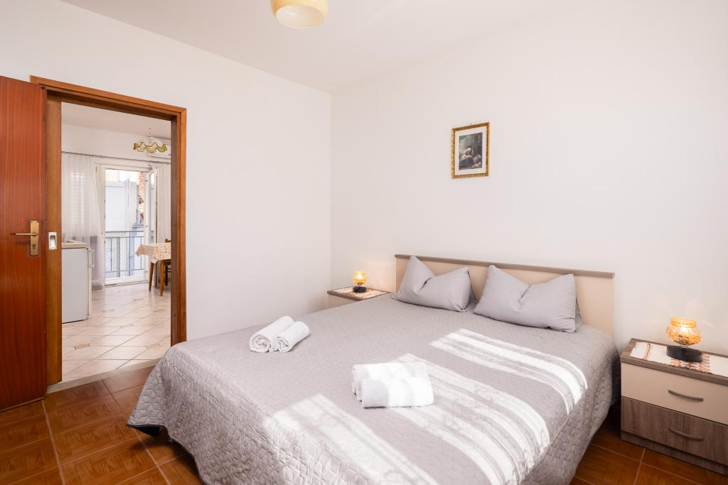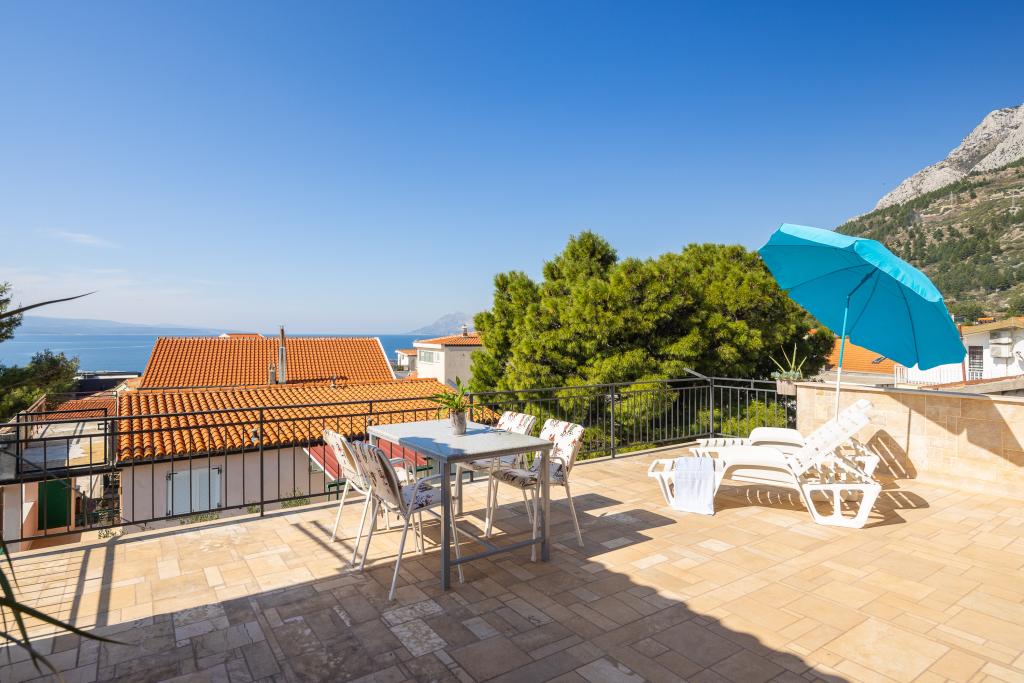 Situati in una zona tranquilla di Baška Voda, questi appartamenti offrono una sistemazione confortevole e funzionale a soli 400 metri dalla spiaggia. Ideali per coppie, famiglie o piccoli gruppi, la struttura comprende un appartamento più spazioso con due camere da letto e due bagni e un'unità più piccola adatta per 2 adulti e un bambino. Entrambi gli appartamenti presentano una disposizione funzionale, cucine attrezzate, comodi soggiorni e spazi esterni, tra cui un balcone privato e l'accesso a una terrazza in comune con barbecue. Gli ospiti possono inoltre usufruire di un parcheggio privato e godere di un ambiente tranquillo vicino a tutti i servizi. Una scelta ideale per un soggiorno rilassante e spensierato a Baška Voda, con il supporto del personale disponibile durante tutto il soggiorno.
