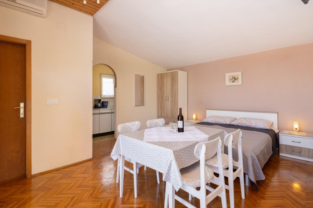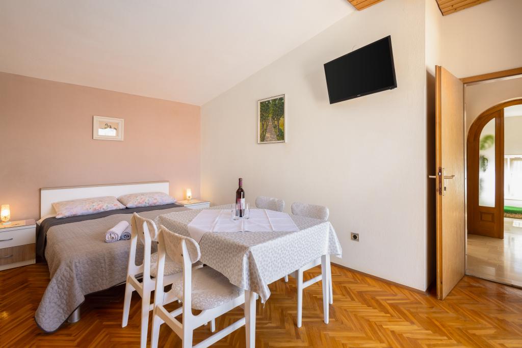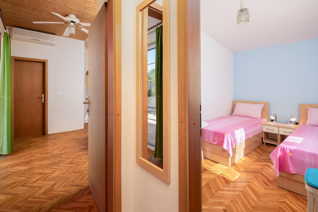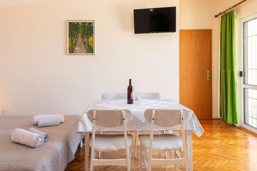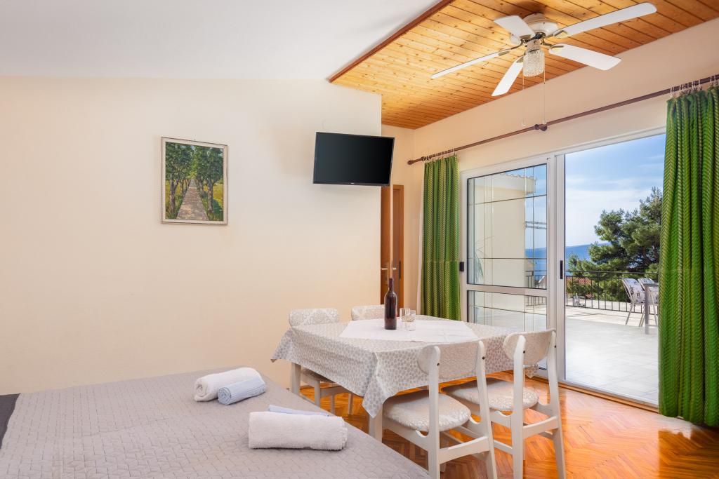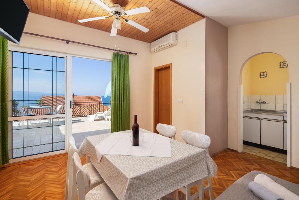 Situati in una zona tranquilla di Baška Voda, questi appartamenti offrono una sistemazione confortevole e funzionale a soli 400 metri dalla spiaggia. Ideali per coppie, famiglie o piccoli gruppi, la struttura comprende un appartamento più spazioso con due camere da letto e due bagni e un'unità più piccola adatta per 2 adulti e un bambino. Entrambi gli appartamenti presentano una disposizione funzionale, cucine attrezzate, comodi soggiorni e spazi esterni, tra cui un balcone privato e l'accesso a una terrazza in comune con barbecue. Gli ospiti possono inoltre usufruire di un parcheggio privato e godere di un ambiente tranquillo vicino a tutti i servizi. Una scelta ideale per un soggiorno rilassante e spensierato a Baška Voda, con il supporto del personale disponibile durante tutto il soggiorno.