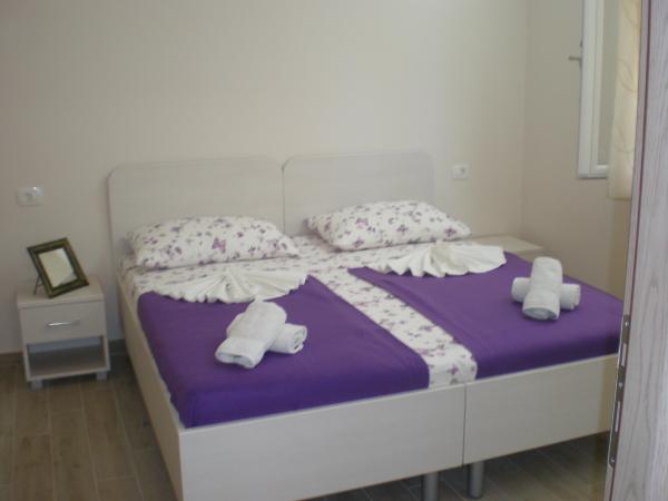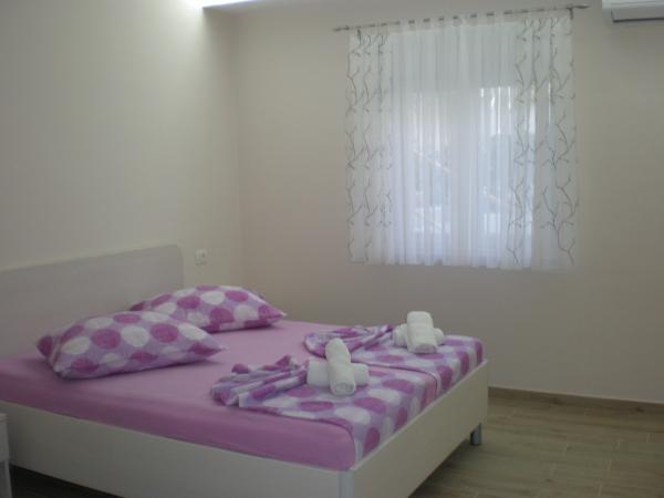 Gli appartamenti nuovi e modernamente attrezzati si trovano al piano terra di una casa di famiglia; aria condizionata, tv satellitare, wi-fi, cassaforte. Solo un centinaio di metri dal centro città / mare. Nelle vicinanze si trova ristorante, panificio, mercato, farmacia, pijaca, ambulanta, banca. Parcheggio nel cortile della casa. Benvenuto!