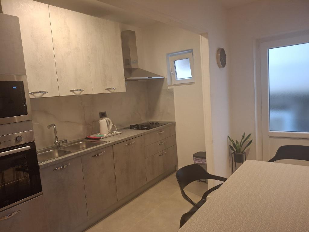Appartamenti climatizzati con vista mare, a soli 200 metri dalla spiaggia principale, 4 minuti a piedi. APPARTAMENTO 2+2 -, confortevole. Appartamento modernamente arredato - 50 m2, camera da letto separata con letto matrimoniale king size e letto estraibile per 2 persone nel soggiorno. APPARTAMENTO 4+1 con 2 camere da letto, ampio soggiorno con letto estraibile per 1 persona-bambino. Adatto a famiglie e coppie. Completamente climatizzato, 3 unità di aria condizionata. APPARTAMENTO 3 confortevole appartamento per 2-3 persone con balcone - vista spettacolare sul mare e sulle isole. Nella zona circostante ci sono ristoranti, parcheggio accanto alla casa.
