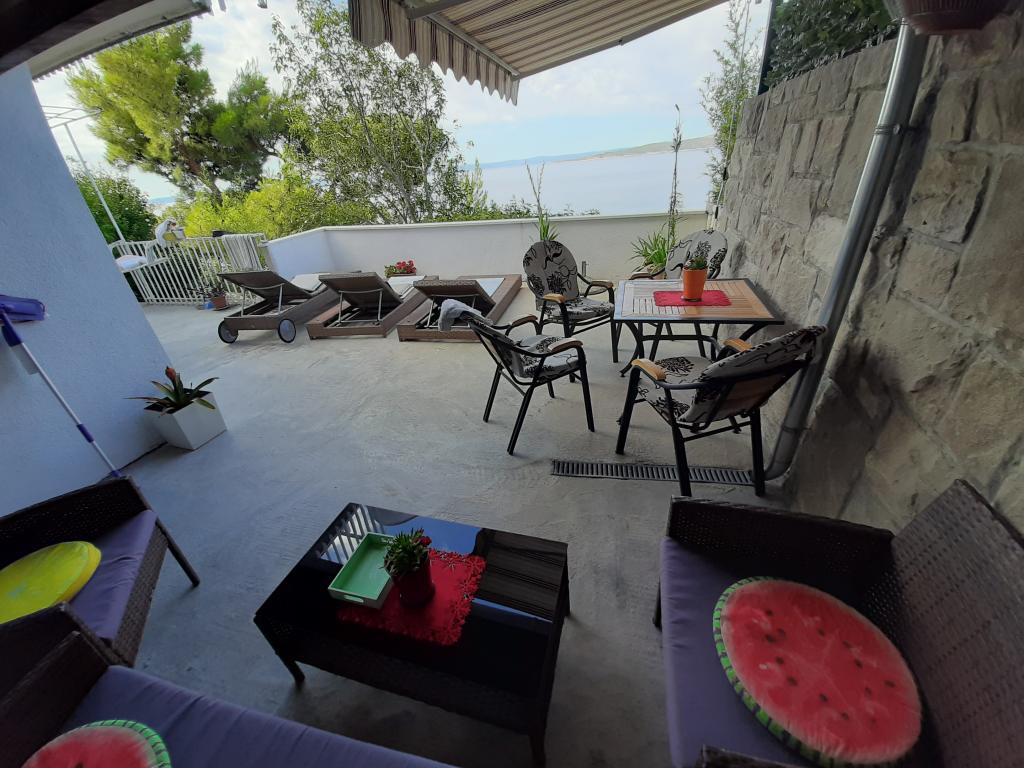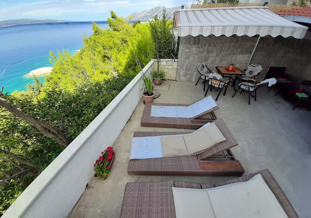 Appartamento recentemente ristrutturato e completamente attrezzato in una zona tranquilla tra Baska Voda e Brela, situata in prima fila sul mare, sopra una bellissima spiaggia. La struttura si trova a 10 minuti a piedi (circa 500 m) dal centro di entrambi i luoghi. Grande terrazza con baldacchino e vista mare, 2 camere matrimoniali, due bagni e cucina con accesso alla terrazza. Tutto nuovo. L'appartamento si trova su un piano separato con un ingresso separato, un ampio giardino separato da tutti i vicini. Parcheggio privato all'ombra appena sopra la casa.
