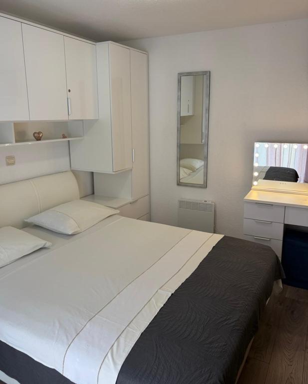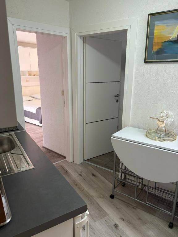 L'appartamento Nino è un appartamento moderno dotato di tutto il necessario per la vostra vacanza. L'appartamento è dotato di aria condizionata e cucina attrezzata. Due camere da letto sono dotate di TV e hanno il proprio bagno. L'appartamento ha un balcone e una terrazza con una splendida vista sul mare e sul monte Biokovo. Oltre a una piccola zona pranzo nell'appartamento, sulla terrazza c'è una zona salotto e sedie a sdraio. Il nostro appartamento Nino si trova a 5 minuti a piedi dal centro e dalla spiaggia principale. Nelle vicinanze si trova anche un parco giochi con erba sintetica per attività sportive: calcio, basket, ...