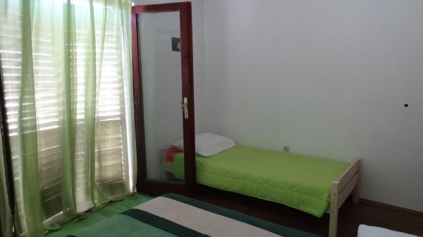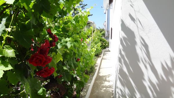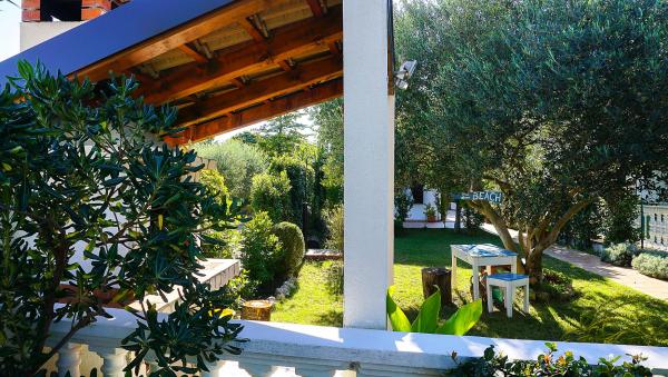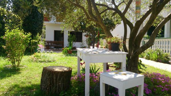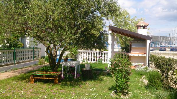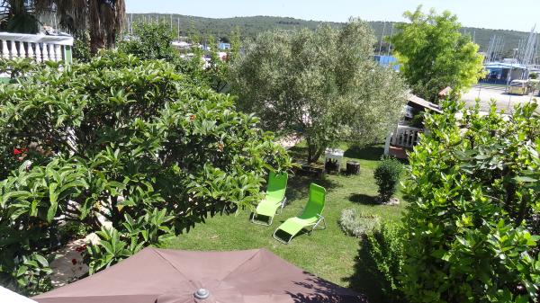 Casa piccola, confortevole con un tranquillo giardino mediterraneo e vista sul porto turistico Dalmazia. Il piano terra sala da pranzo e una piccola cucina, camera singola con bagno e toilette. Sul lato sud del piccolo giardino con palme, una scala conduce al primo piano con due camere da letto (1 con aria condizionata) con un letto, scrivania, armadio, bagno e toilette. Balcone aperto al giardino. Sulla terrazza davanti all'ingresso della casa è un mobili da giardino in legno di qualità e un grande ombrellone. Prato paesaggistico con un piccolo albero di ulivo e nešpulom. Piante mediterranee basse circonda la zona con sdraio, doccia esterna, e una casella di controllo grill separato. Di fronte è un parcheggio privato per 3 auto. La casa è completamente a disposizione degli ospiti. 5 min a piedi dalla bella spiaggia di sabbia (beach bar, club subacqueo, noleggio di scooter di mare, un grande gelato, campi da pallavolo, sedie a sdraio, docce, parcheggio)