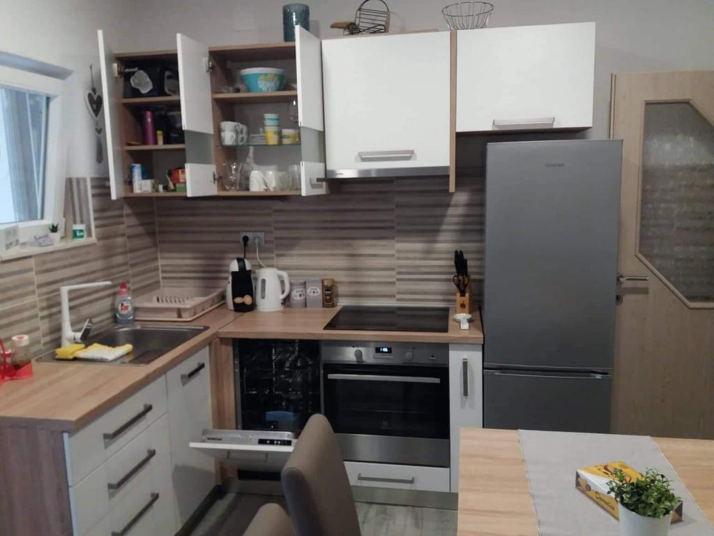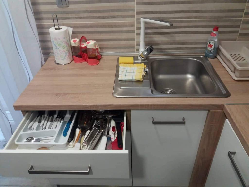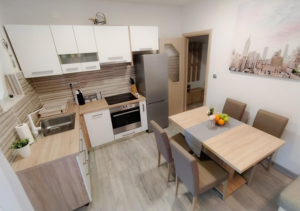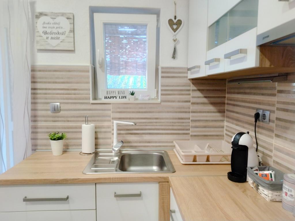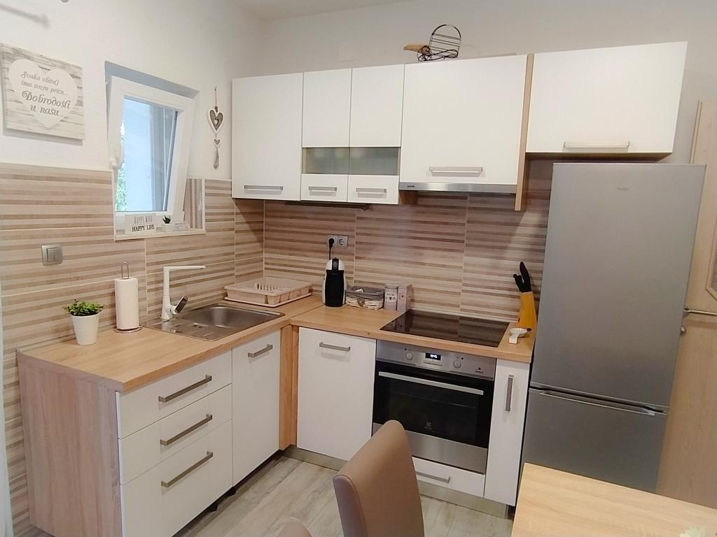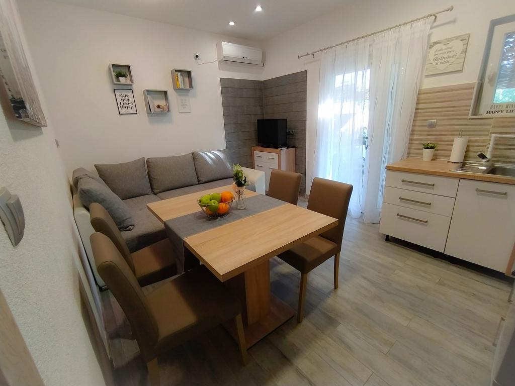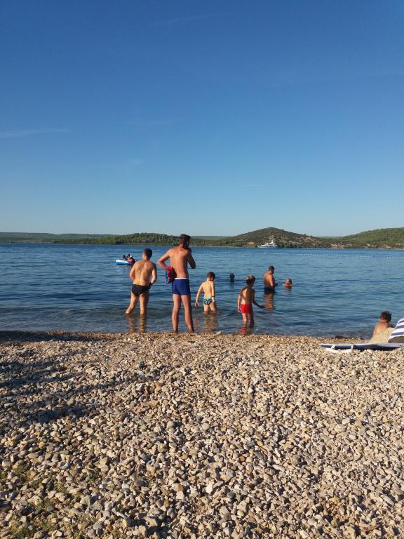 Appartamento Baza si trova in un tranquillo villaggio di Bilice, tra Sebenico e il Parco Nazionale di Krka. La superficie dell'appartamento è di 35 m2 e 18 m2 di terrazza. Si compone di camere da letto con due letti che possono essere uniti e separati, una cucina completamente attrezzata (forno, congelatore, lavatrice) e un soggiorno con due letti. Il bagno è spazioso ed è disponibile l'uso gratuito della lavatrice. L'appartamento è dotato di aria condizionata, Wi-Fi, TV (satellitare, Smart TV). Se venite con bambini, possiamo offrirvi un lettino da viaggio e un alimentatore. Sono disponibili parcheggio privato, ampio cortile e barbecue. Il cortile è recintato e abbastanza grande da giocare con bambini piccoli. La distanza dalla spiaggia e dalla caffetteria con parco giochi per bambini è di 250 m, 5 minuti a piedi. Vicino all'autostrada.