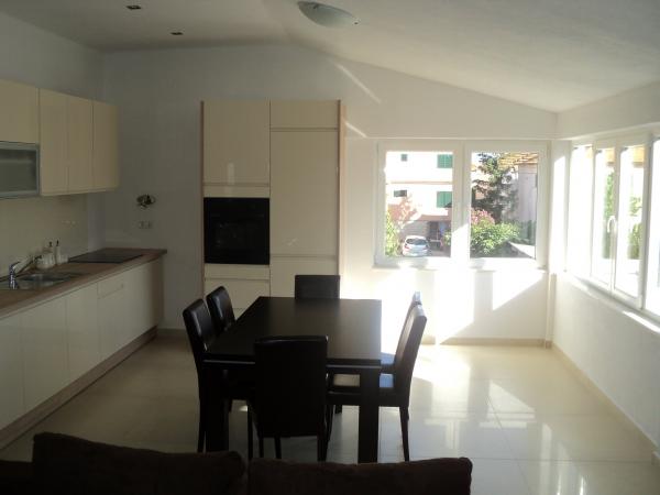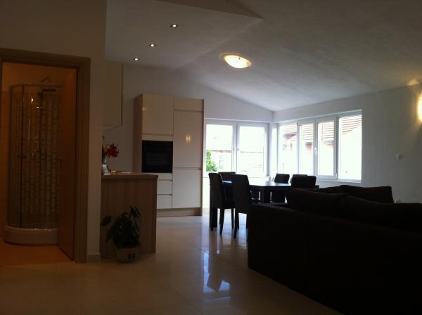 Nuove funzioni moderno appartamento con vista sul mare situato a soli 57 metri dalla spiaggia di sabbia e camminare 2 km di lunghezza. Kuhinja.Klimatiziran completamente attrezzata con WiFi. E 'ideale per un soggiorno con i bambini e persons.we anziani chiudere il negozio, panetteria, bar, mjenjačnica.U L'appartamento dispone di un giardino dove gli ospiti possono rimanere. La sua apparecchiatura offre konfor.Dobrodošli.