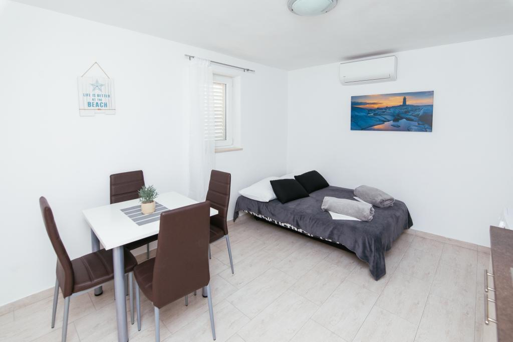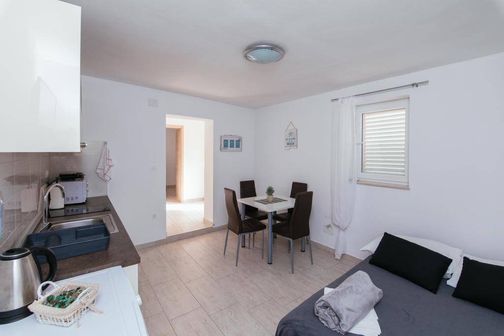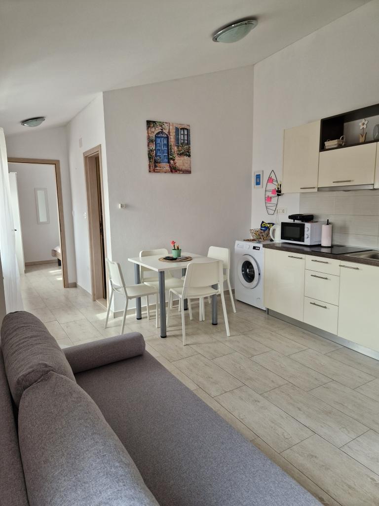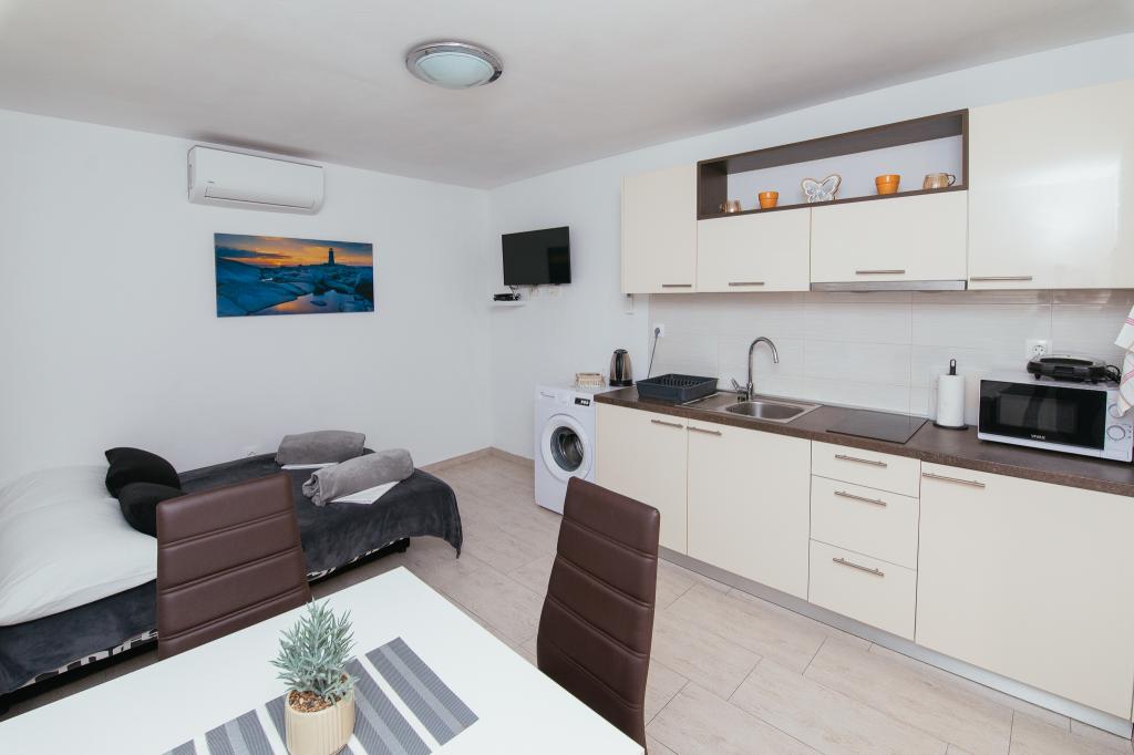 Gli appartamenti AE si trovano a Biograd na moru, in Splitska ulica 37a. Gli appartamenti distano 700 metri dalla spiaggia di Dražice (max 7 minuti a piedi), mentre il centro città è a 500 metri. Il negozio si trova a 20 metri dall'appartamento. L'appartamento dispone di una camera da letto, divano letto, cucina, bagno, sala da pranzo e un'ampia terrazza in comune. Parcheggio gratuito, aria condizionata, Wi-Fi, lavatrice e barbecue a disposizione.