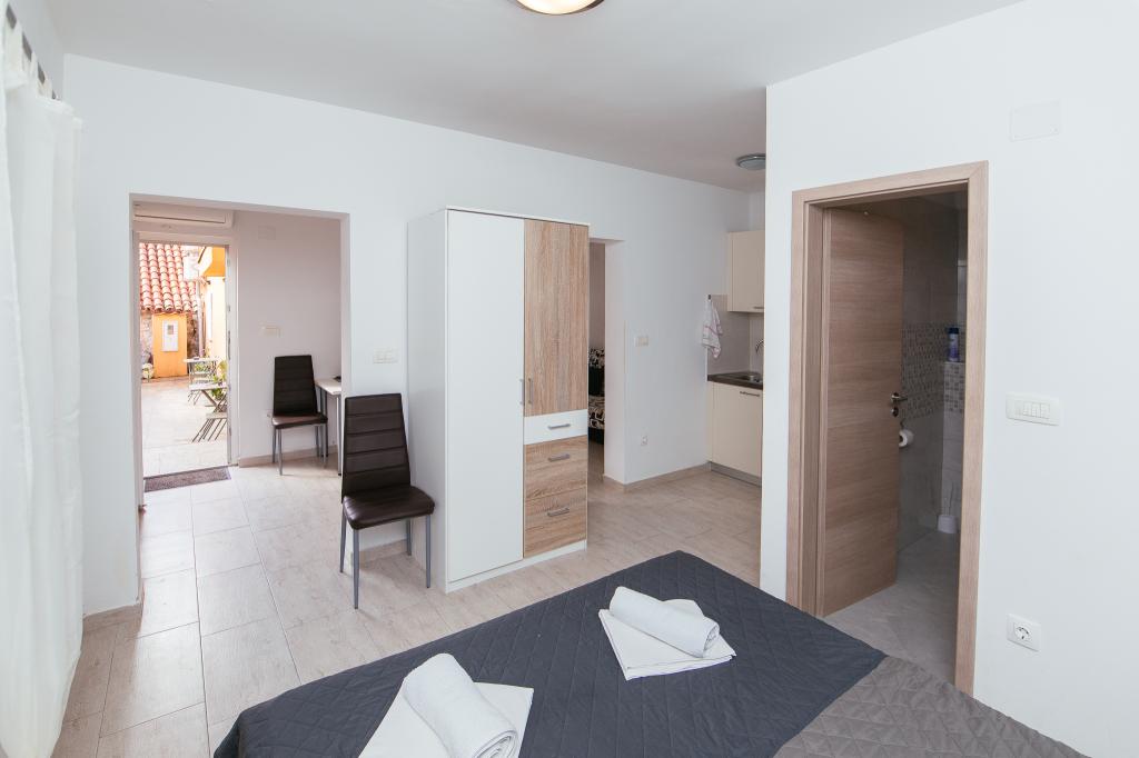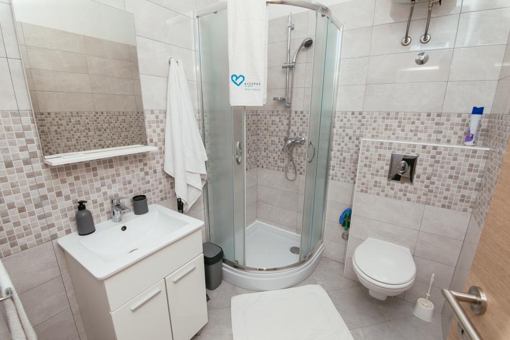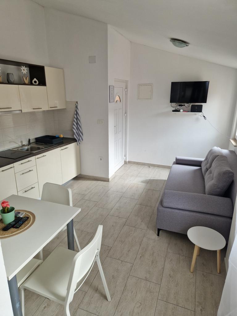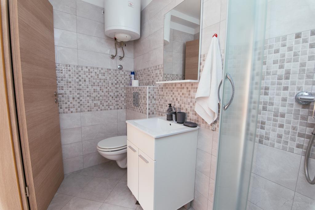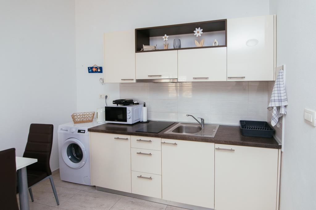 Gli appartamenti AE si trovano a Biograd na moru, in Splitska ulica 37a. Gli appartamenti distano 700 metri dalla spiaggia di Dražice (max 7 minuti a piedi), mentre il centro città è a 500 metri. Il negozio si trova a 20 metri dall'appartamento. L'appartamento dispone di una camera da letto, divano letto, cucina, bagno, sala da pranzo e un'ampia terrazza in comune. Parcheggio gratuito, aria condizionata, Wi-Fi, lavatrice e barbecue a disposizione.