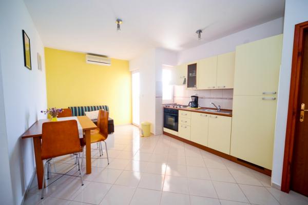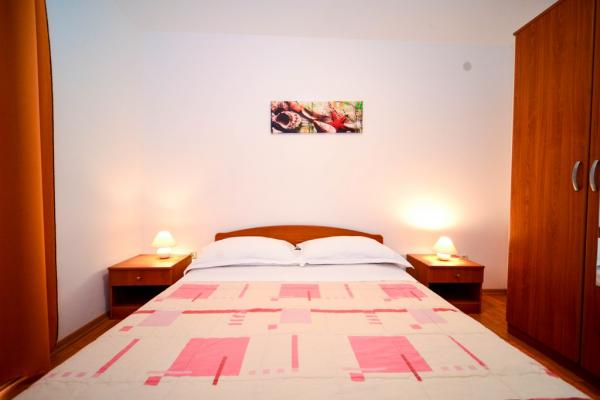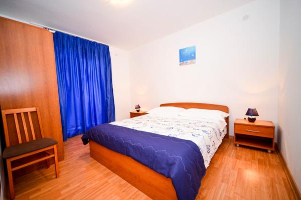 Appartamenti di charme e completamente rinnovate in Biograd in una zona tranquilla della città 6.month 45 euro / notte per 4-5 persone 7 ° e 8.mjesec 60eur/noć per 4-5 persone La struttura dispone di un ampio appartamenti a 4 camere da letto, ogni appartamento ha 50m2 + balcone + terrazzo. Due appartamenti si trovano al primo piano e due al 2 ° piano con vista sul mare. Ogni appartamento ha due camere da letto con letti matrimoniali, bagno, sala da pranzo, cucina completamente attrezzata, balcone con accesso dalla camera da letto e un ampio terrazzo sul quale emerge dalla camera da letto e la cucina e la sala da pranzo. C'è la possibilità di letti aggiuntivi per l'appartamento può ospitare fino a 5 persone. Il parcheggio è circondato da una recinzione di fronte alla casa. Ogni visitatore ha un parcheggio. Nel giardino c'è un barbecue / camino e una terrazza all'aperto con la possibilità di utilizzo per tutti gli ospiti. La spiaggia più vicina è Bosa, spiaggia ciottolosa 10-15min a piedi.