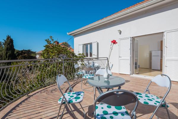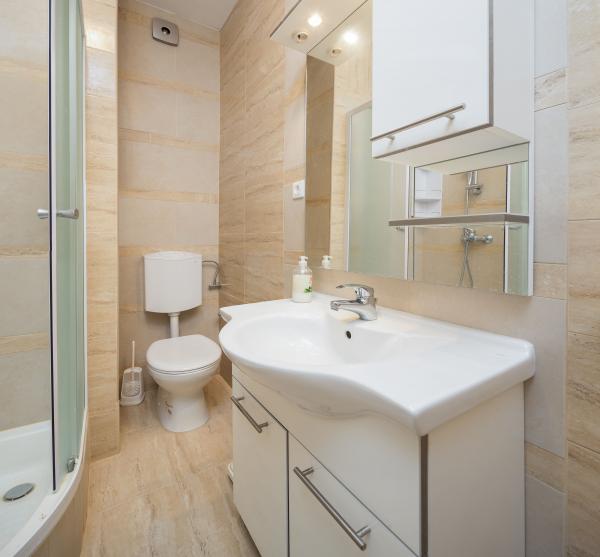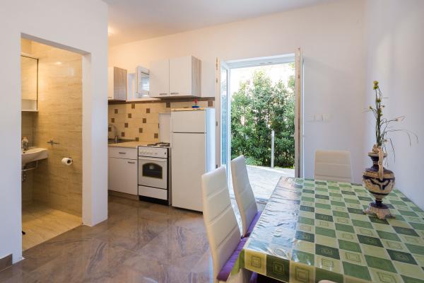 Nuova villa ristrutturata (2017). Villa è composta da 5 appartamenti. L'appartamento ha due camere da letto, soggiorno con divano letto per 2 persone. Ogni camera ha il proprio bagno. Accesso gratuito a internet, aria condizionata, parcheggio, biancheria da letto e da bagno. L'appartamento ha una grande terrazza immersa nel verde, appena dietro il verde ci sono belle spiagge, a soli 100 metri dall 'appartamento. L'appartamento ha un bellissimo grande giardino, pieno di verde, appena dietro il verde ci sono belle spiagge. La posizione è di lusso tranquillo e accogliente. Ristoranti, negozi, la spiaggia immediatamente nelle vicinanze. 80m di distanza da casa, c'è una passeggiata, che ha varie strutture e conduce direttamente al centro della città. Beach detiene una bandiera blu, segnando le migliori spiagge del mondo.