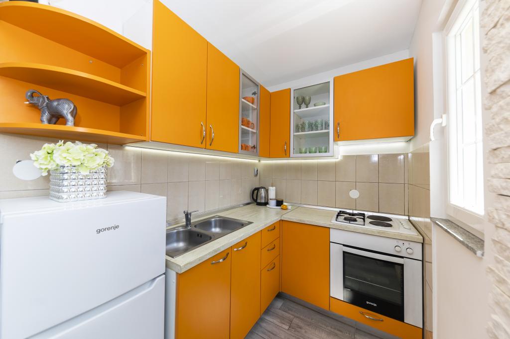 BIOGRAD NA MORU in affitto, appartamenti appena ristrutturati composti da una camera, cucina, bagno, Wi-fi, TV, aria condizionata Centro città Plaza 150m Negozio, ufficio postale, medico, farmacia da 20 a 50m Stazione degli autobus 50m