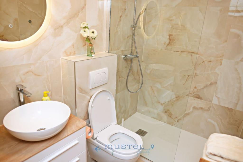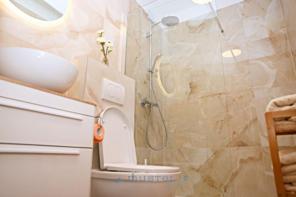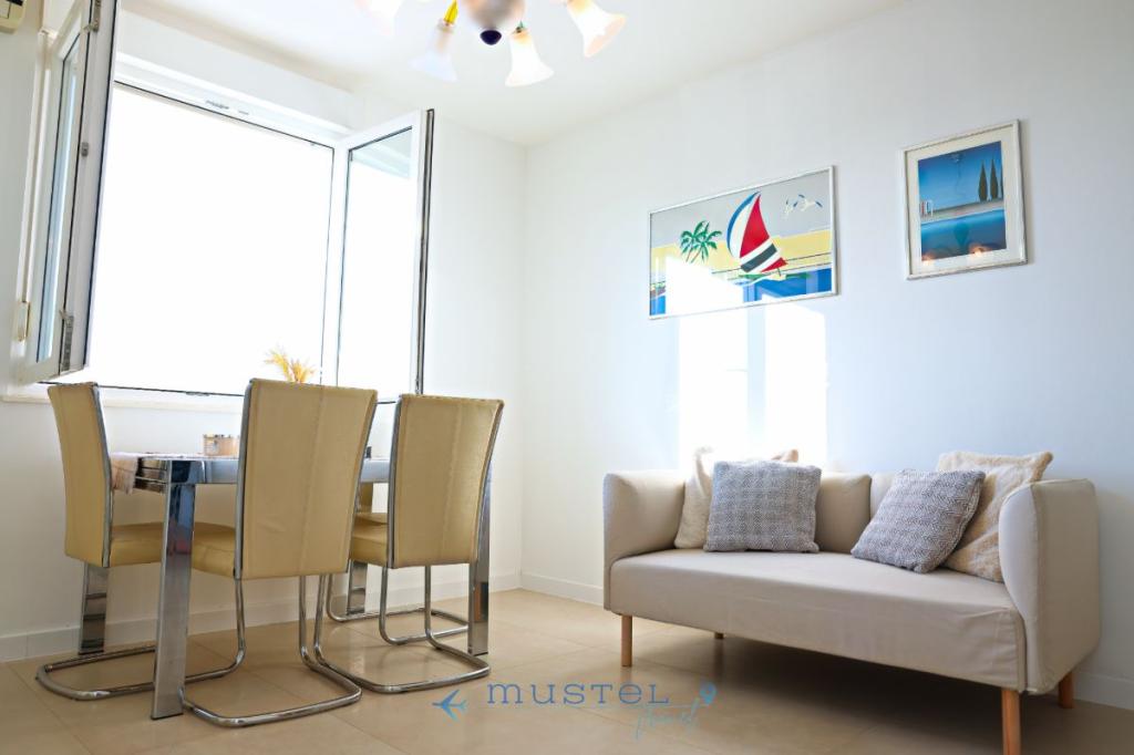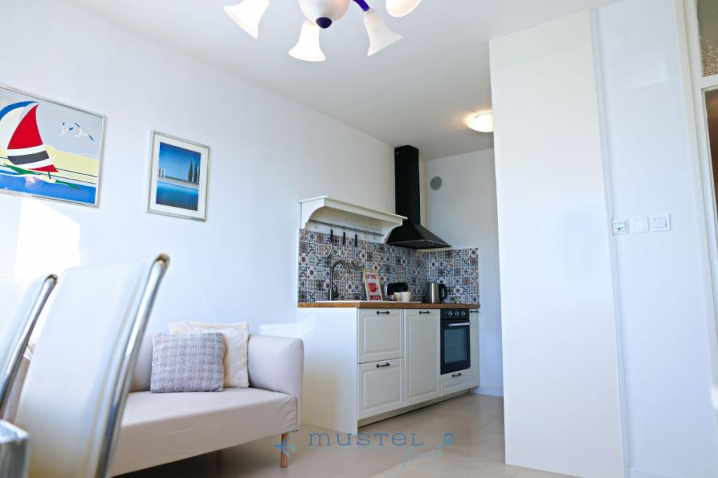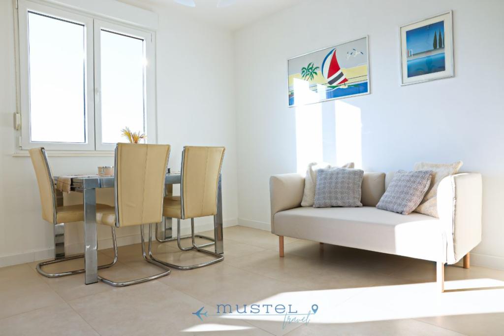 L'appartamento offre una sistemazione confortevole per un massimo di 4 persone, si trova al secondo piano dell'edificio ed è ideale per famiglie, coppie o amici. Contenuto: 2 camere da letto: una con letto matrimoniale 160x200, l'altra con letto matrimoniale 180x200 Bagno con doccia e lavatrice Cucina completamente attrezzata Balcone con vista mare - perfetto per il caffè del mattino o il relax serale Soggiorno con accesso al balcone Parcheggio gratuito a 150 metri dall'appartamento