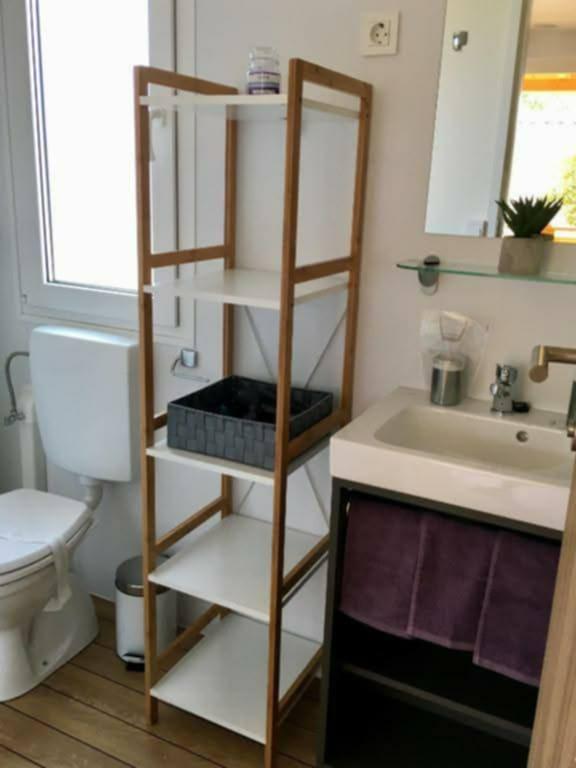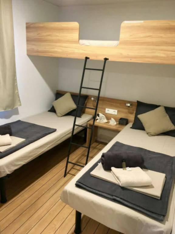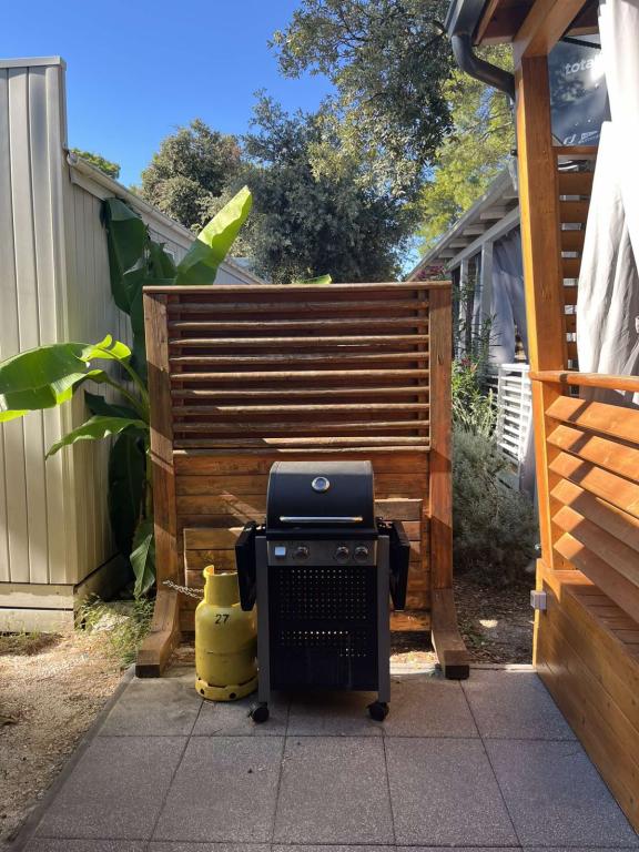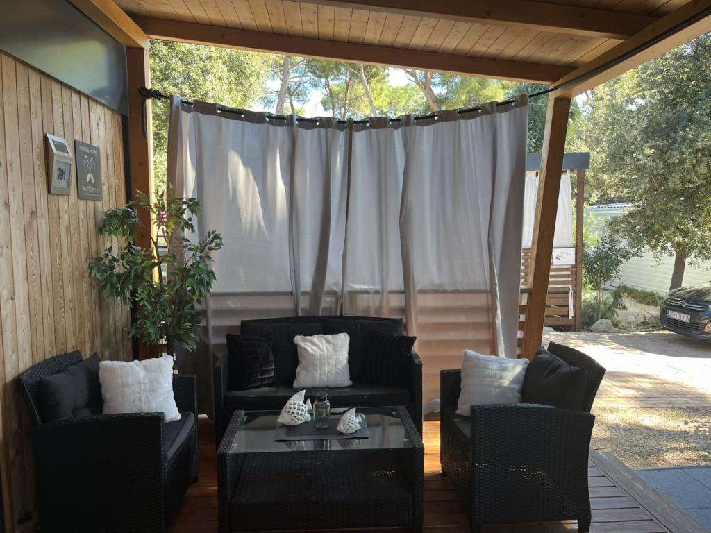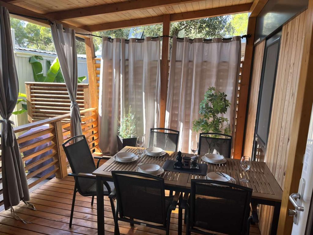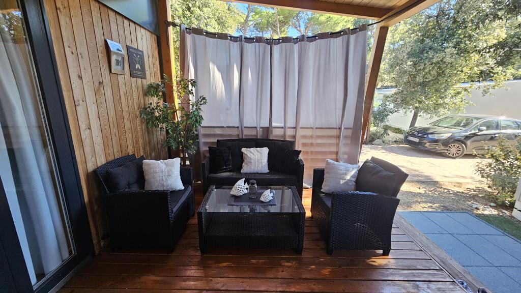 Moderna casa mobile climatizzata nel campeggio Park Soline, a pochi passi dalla spiaggia e a 15 minuti a piedi dal centro di Biograd. Offre 2 camere da letto, una cucina, un soggiorno, 2 bagni e una terrazza coperta con mobili da esterno. Wi-Fi gratuito, parcheggio, animazione per bambini, campi sportivi e un ristorante mediterraneo in loco. Perfetta per famiglie o coppie in cerca di relax all'ombra dei pini, vicino a tutte le principali attrazioni.