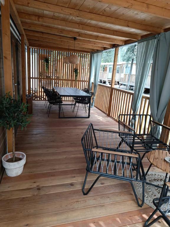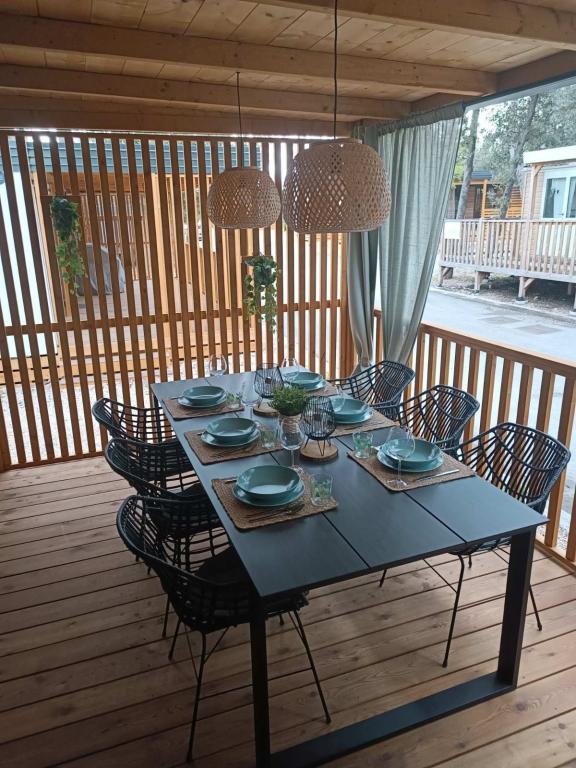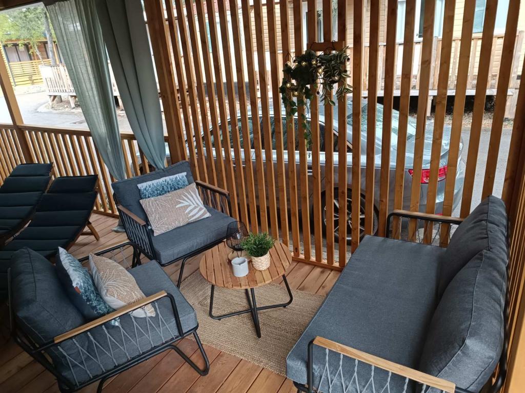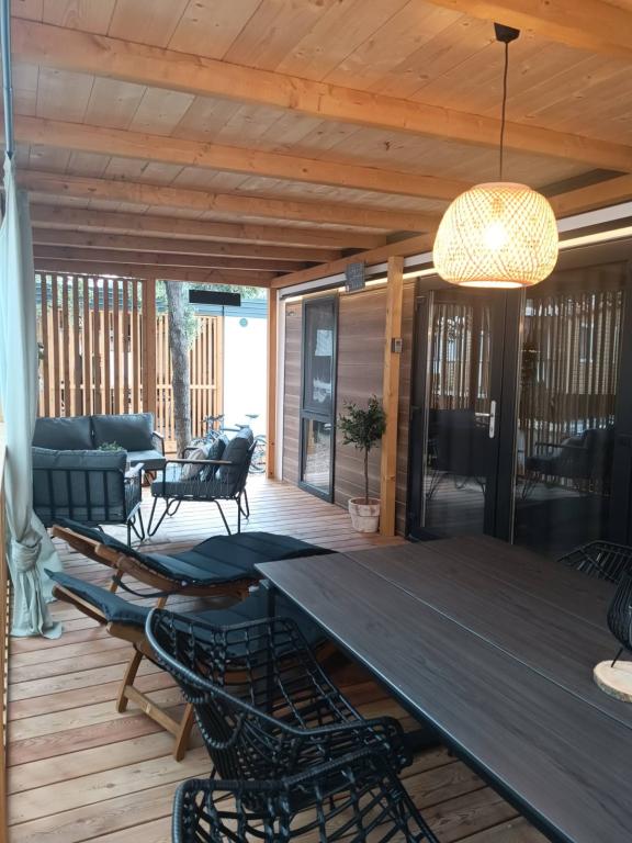 La moderna casa mobile InnMare 1, situata in una zona tranquilla del campeggio Soline, immersa in una pineta, è il luogo ideale per una vacanza in famiglia. Con una superficie di 32 m², è composta da una camera da letto con letto matrimoniale, una camera con due letti singoli, un soggiorno con divano letto (1-2 persone), due bagni separati con WC, una terrazza di 32 m², un piccolo cortile e un posto auto. La struttura è completamente arredata e la cucina, oltre alle dotazioni standard, comprende anche un forno a microonde, un bollitore elettrico e una macchina per caffè espresso. La terrazza è dotata di un tavolo da pranzo aggiuntivo, sedie a sdraio per un perfetto pisolino al profumo di pino, e accanto alla struttura si trova un barbecue, anch'esso parte integrante dell'attrezzatura a disposizione degli ospiti. Accanto alla struttura è disponibile anche un parcheggio per un veicolo a disposizione degli ospiti. Benvenuti all'InnMare 1, una struttura moderna pensata per una vacanza in famiglia tranquilla e idilliaca in una tranquilla pineta, a breve distanza dal mare, dalle spiagge e da Biograd na moru!