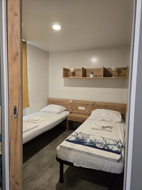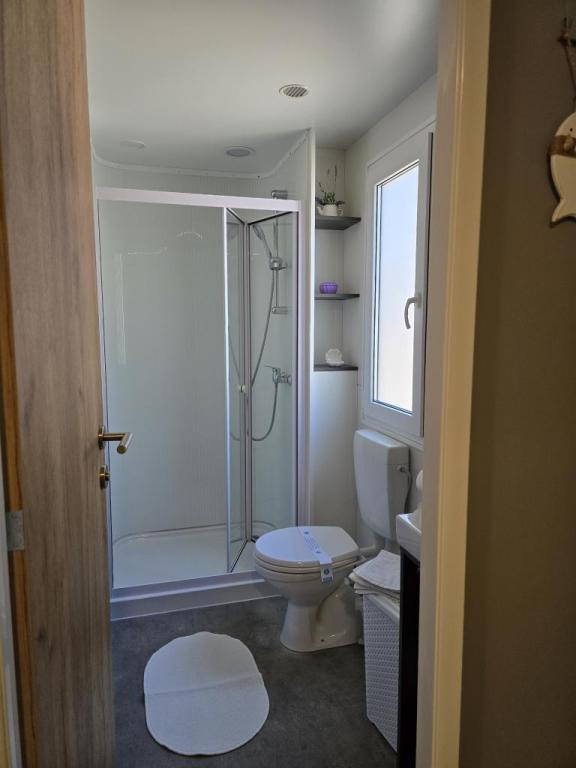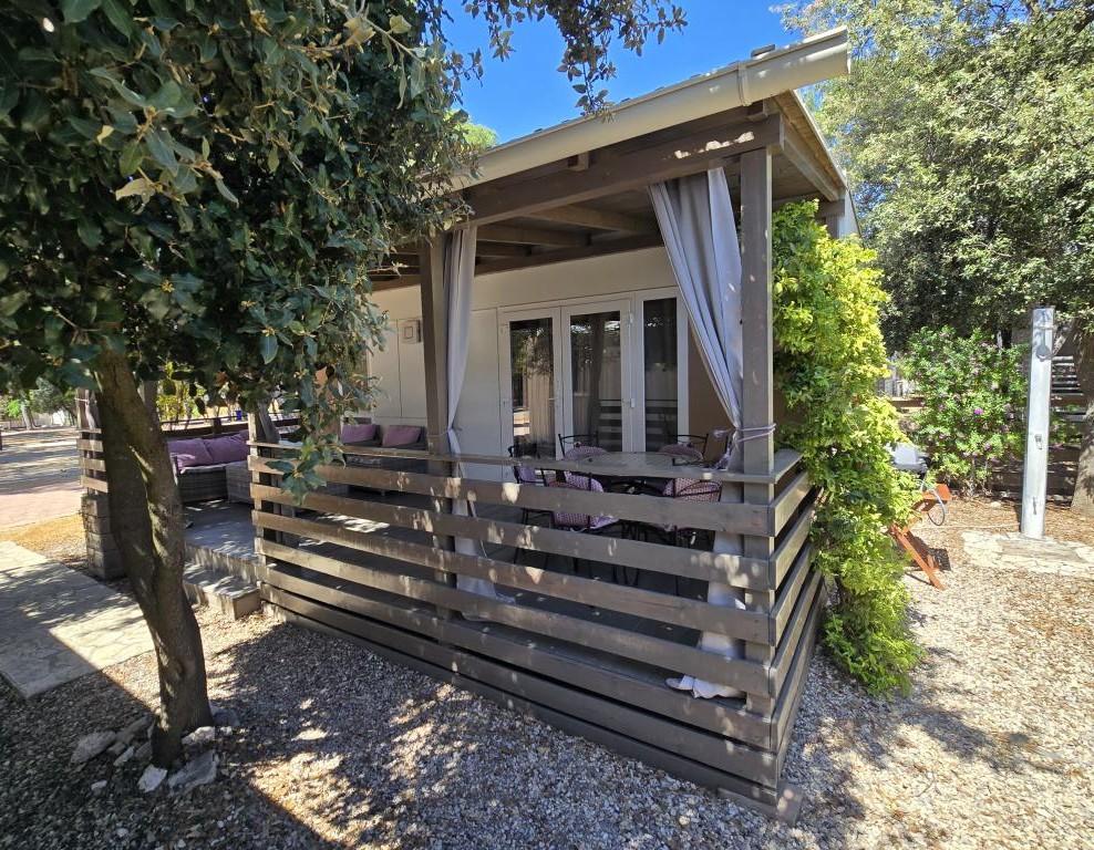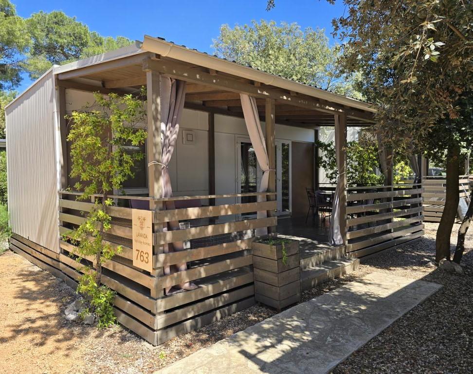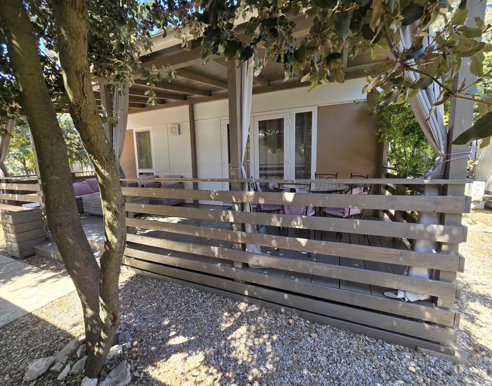 Casa mobile completamente attrezzata di 30 m² con ampia terrazza e posto auto. Situata in una zona tranquilla del campeggio Soline, non troppo lontana dal rumore di ristoranti, bar e dalla spiaggia, ma comunque abbastanza vicina.