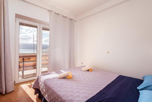 Completamente attrezzato, nuovo appartamento in un tranquillo villaggio, situato vicino al mare. 2 minuti a piedi dalla spiaggia, negozi, ristoranti, con splendida vista mare e una grande porta terrazza, adatto per bambini piccoli