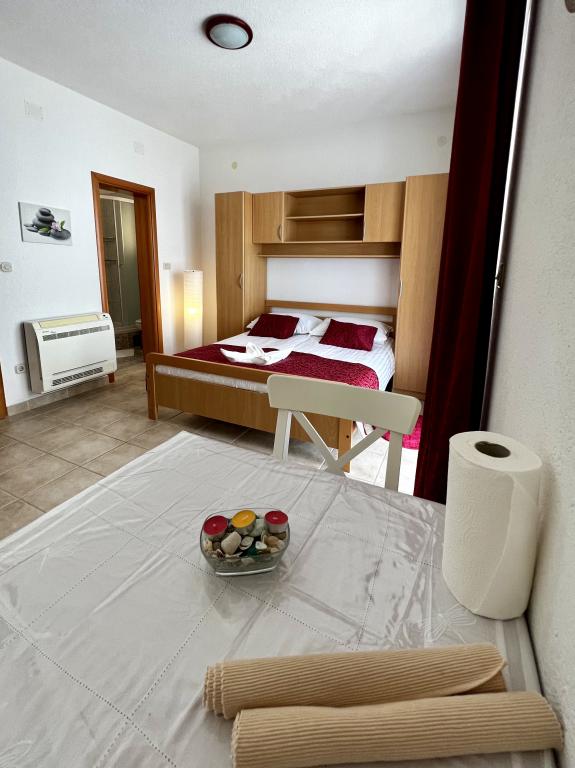 Villa Marina si trova in una zona tranquilla di Bol, sull'isola di Brač, a pochi minuti a piedi dal centro e dal mare. La struttura offre diversi appartamenti, tutti puliti, funzionali e dotati di tutto il necessario per un piacevole soggiorno estivo. Ogni appartamento dispone di cucina, bagno, aria condizionata e balcone o terrazza. La maggior parte gode di vista sul mare o sulla città. Gli ospiti possono usufruire di un parcheggio privato all'interno della proprietà. Il centro di Bol, i ristoranti, i negozi e il lungomare sono facilmente raggiungibili a piedi, mentre la famosa spiaggia di Zlatni rat dista circa 15-20 minuti a piedi o pochi minuti in auto. La struttura è ideale per coppie, famiglie e piccoli gruppi in cerca di una sistemazione semplice e confortevole, vicina a tutti i servizi ma in un ambiente tranquillo.