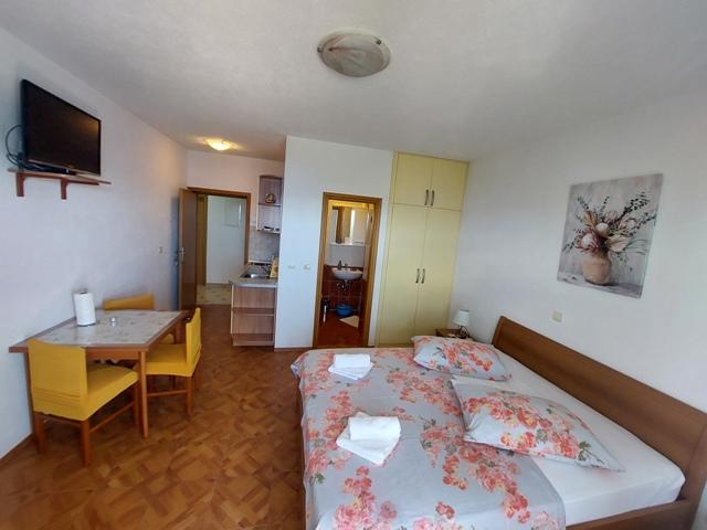 Ciao a tutti. Consiglio l'appartamento della signora Lidonka, dove troverete tutto il necessario per la vostra famiglia; è dotato di tutti gli elettrodomestici necessari per l'uso quotidiano. Se avete voglia di cucinare per i vostri bambini, potete farlo facilmente, e se volete mangiare sul lungomare, avete un'ampia scelta di ristoranti. Inoltre, la proprietaria è una persona molto cordiale e amichevole, con cui si può parlare di qualsiasi cosa. Sono stata molto felice quando è venuta a trovarmi il giorno prima del mio compleanno, dato che saremmo partiti il giorno dopo. Mi ha fatto gli auguri e mi ha regalato un liquore fatto in casa, il che è stato molto gentile. Quindi, miei cari, consiglio vivamente gli appartamenti della signora Lidonka. Sono vicini alla spiaggia e la vista è mozzafiato.