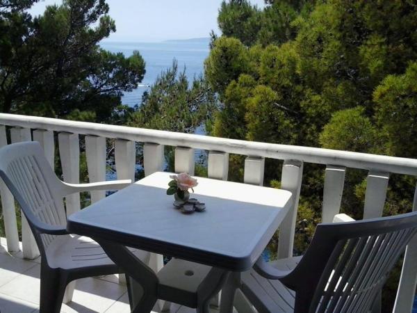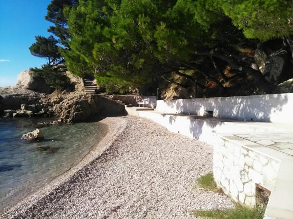 Studio appartamento è situato in una tranquilla baia Jakiruša di distanza dalla spiaggia meno di un minuto a piedi, 10 metri sopra il livello del mare, circondato da una fitta pineta in natura incontaminata, con splendida vista sulle isole di Brac e Hvar. Alla vicina spiaggia è possibile trovare il luogo ideale per rilassarsi, godersi il suono delle onde e il bel clima mediterraneo. Studio appartamento è situato al piano terra su circa 30 m2 di interni ed esterni terrazza privata. La terrazza che appartiene al dominio marittimo con vista sul mare, spiagge e isole. Lo studio è composto da una camera con un letto e letto a castello, bagno e angolo cottura con forno e frigorifero e freezer. Asciugamani, carta igienica, asciugamani da cucina, detersivo per piatti e lenzuola sono inclusi. Parcheggio, tassa di soggiorno e l'uso dei servizi Wi-Fi sono inclusi. E Camera 1 sono collocati al secondo piano, due camere hanno un bagno separato e un balcone con vista sul mare e sulle isole