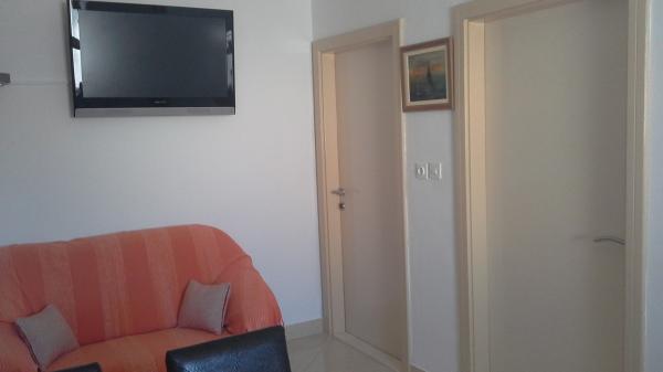 RIG Gli appartamenti sono situati al secondo piano della casa. La nostra casa si trova a 5 minuti a piedi dal centro di Brela-bay e 5 minuti a piedi dalla spiaggia di sabbia, all'ombra dei pini. Ci troviamo a 50 metri sopra la strada principale che attraversa la città, in una zona tranquilla circondata da uliveti. Gli ospiti della casa sono offerti gratuitamente il parcheggio e con terrazza offre una vista mozzafiato sul mare e sulle vicine isole di Brac e Hvar. I nostri appartamenti offrono il comfort, ei padroni di casa sono gentili e disponibili.