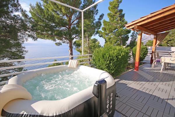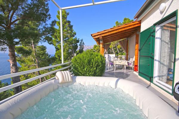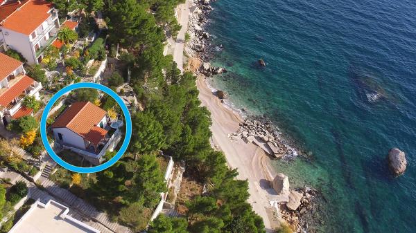 Completamente attrezzato tutta la casa in una zona tranquilla di Brela. Nessun altri ospiti o il proprietario, ingresso indipendente, completamente recintato offre privacy superiore. La casa si trova a soli 40 metri dalla spiaggia. La casa è dotata di un massimo di 5 persone. Una camera per tre persone e un divano letto nel soggiorno per due persone. La casa ha una grande terrazza per idromassaggio e vista sull'oceano. Sotto la casa è una passeggiata lunga 6 km e fornisce una romantica passeggiata al suono delle onde!