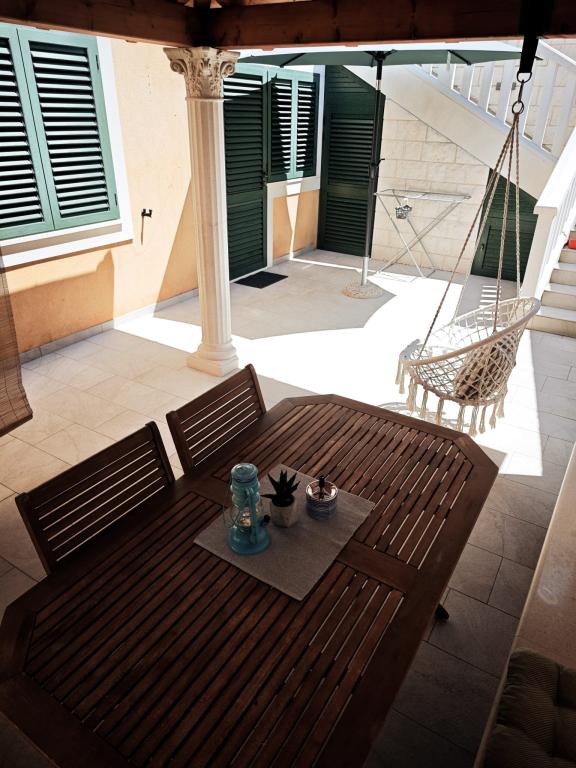 Appartamenti completamente e modernamente attrezzati nella tranquilla quarta baia di Brna, situata nella seconda fila a 50 metri dal mare, con splendide viste e pace perfetta. 5 minuti a piedi dalla spiaggia e 10 dal centro, o al grande fiume.