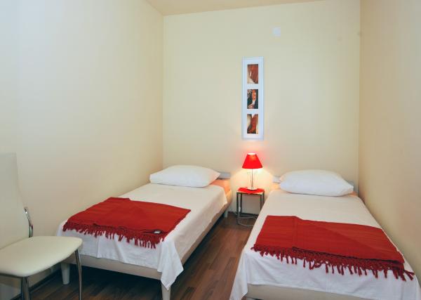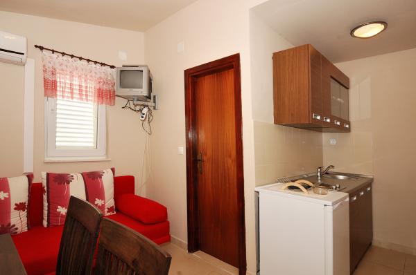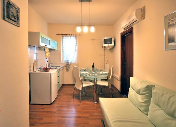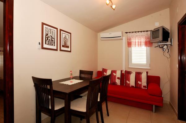 Piacevoli, appartamenti appena ristrutturati si trovano proprio all'inizio di Brodarica, a pochi minuti a piedi dalla spiaggia di Brodarica. Non lontano dalla casa vi è il Parco Nazionale di Krka e l'isola di Krapanj, l'isola più basso nel Mediterraneo con una lunga spužarstva storia. Monolocali sono composti da una stanza dove c'è una cucina, due letti, un bagno separato, un balcone (tutti tranne A5). Gli appartamenti sono adatti per 4 persone composto da 2 camere da letto, bagno, cucina-soggiorno con divano-letto, balcone. Gli appartamenti sono adatti per 2-4 persone, composto da: cucina-soggiorno con divano letto, camera matrimoniale, bagno, balcone (tutti tranne A8). Tutti gli appartamenti sono dotati di aria condizionata. A disposizione degli ospiti TV, satellite, e la maggior parte delle unità sono dotate di balcone con vista mare. Gli ospiti possono utilizzare la griglia, e posto auto.