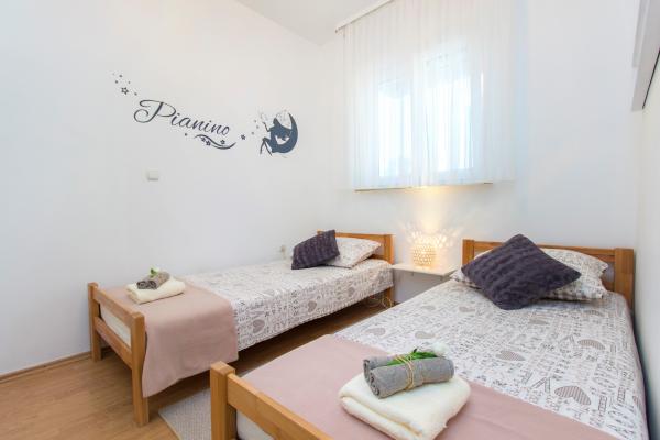 Moderno appartamento attrezzato di 100 m2 situato a Brodarica, un tranquillo villaggio a pochi chilometri da Sibenik. Appartamento Piano si trova a soli 40 metri dalla spiaggia e dispone di una vista sul mare. Si compone di due camere da letto, bagno, wc, cucina completamente attrezzata, ampio soggiorno e terrazza.