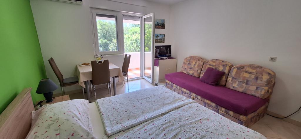 Al primo piano del condominio, un balcone con vista sul bosco e sul verde. Tranquillo e comodo per dormire. Nelle vicinanze si trova un campo da tennis, un campo da basket, piste ciclabili, passeggiate e l'oliveto più bello e più grande della Croazia. Un resort per famiglie preferito anche dagli amanti della natura. Spiagge naturali, porto turistico, grill, ristoranti, negozi, panetteria, pasticceria e ufficio postale sono disponibili nelle immediate vicinanze dell'appartamento.