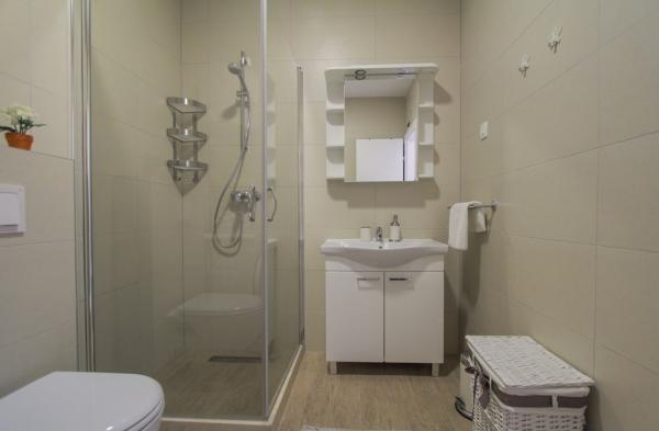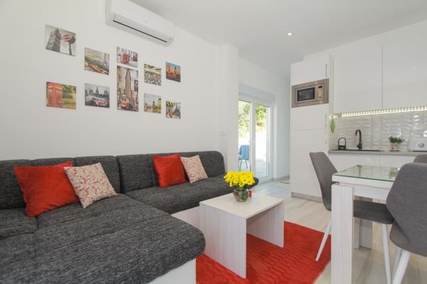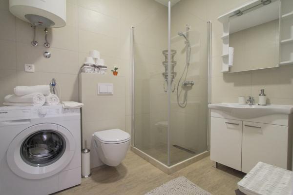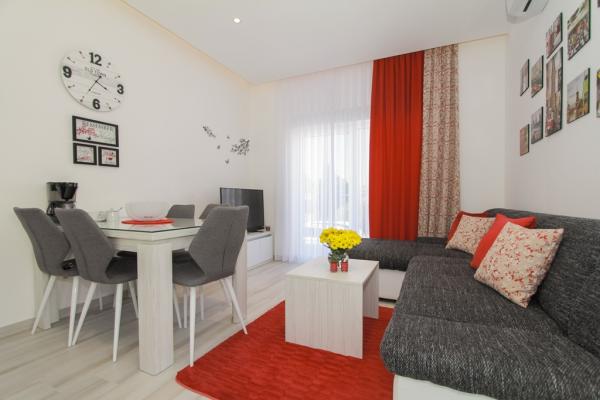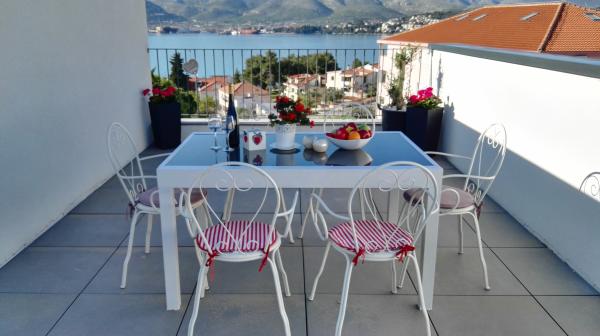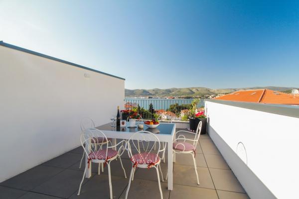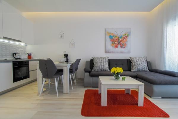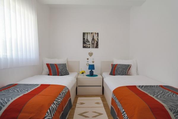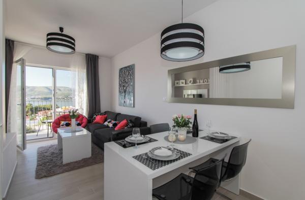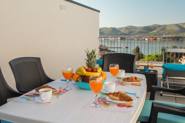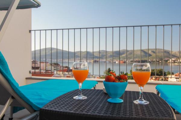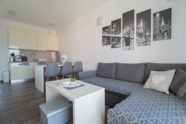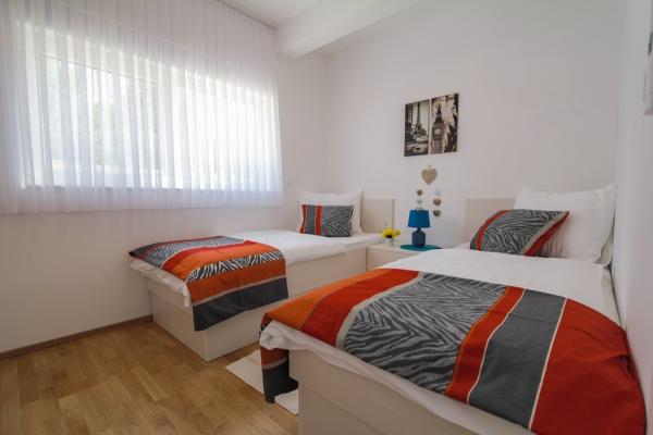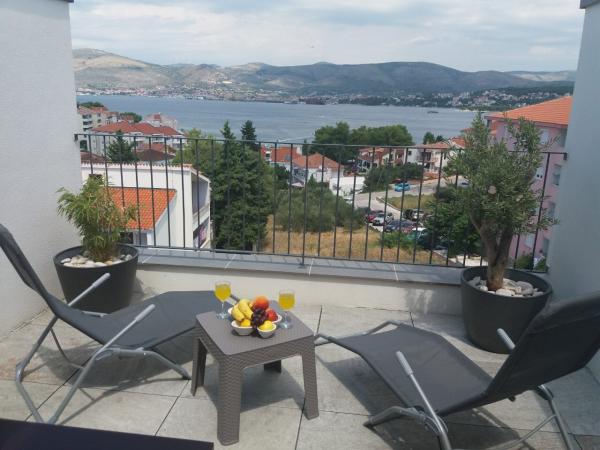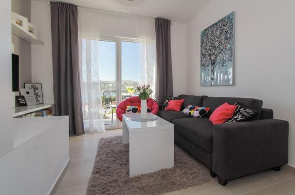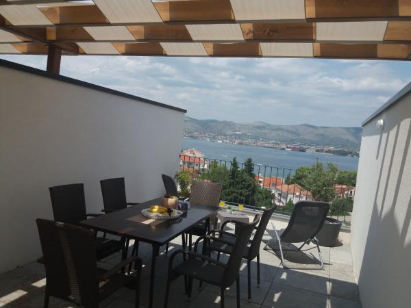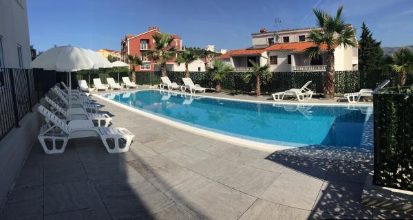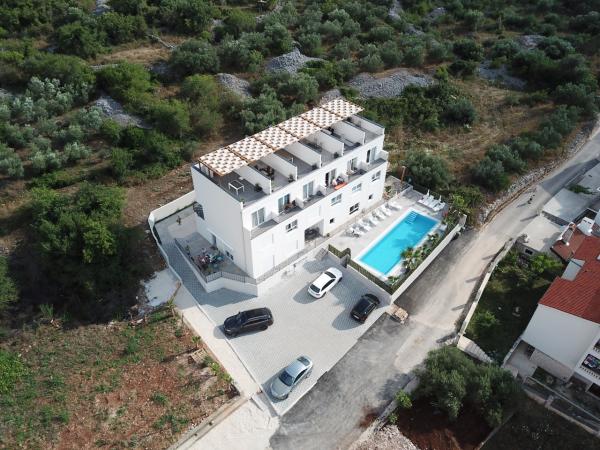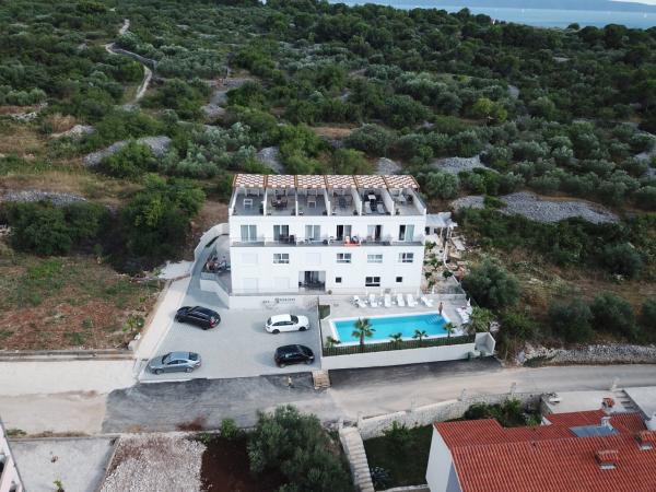 I nuovi appartamenti con due camere da letto si trovano in una zona tranquilla di Okrug Gornji, a soli 5 minuti a piedi dalla spiaggia nella baia di Okruška ea 10 minuti a piedi dalla spiaggia di Tatinje. . Gli appartamenti sono arredati in stile moderno, con cucine completamente attrezzate. Le suite a sei piani hanno ciascuna una terrazza sul tetto di 25 m2 con una bellissima vista sul mare, e c'è un barbecue e una serie di posti a sedere. Due appartamenti al piano terra hanno anche una terrazza con vista mare, barbecue e posti a sedere. Di fronte all'edificio si trova una piscina con acqua salata di 50 m2. A maggio e ottobre l'acqua nella piscina sarà riscaldata. Wifi Beplatan. Nel cortile dell'edificio è presente un posto auto per ogni appartamento.