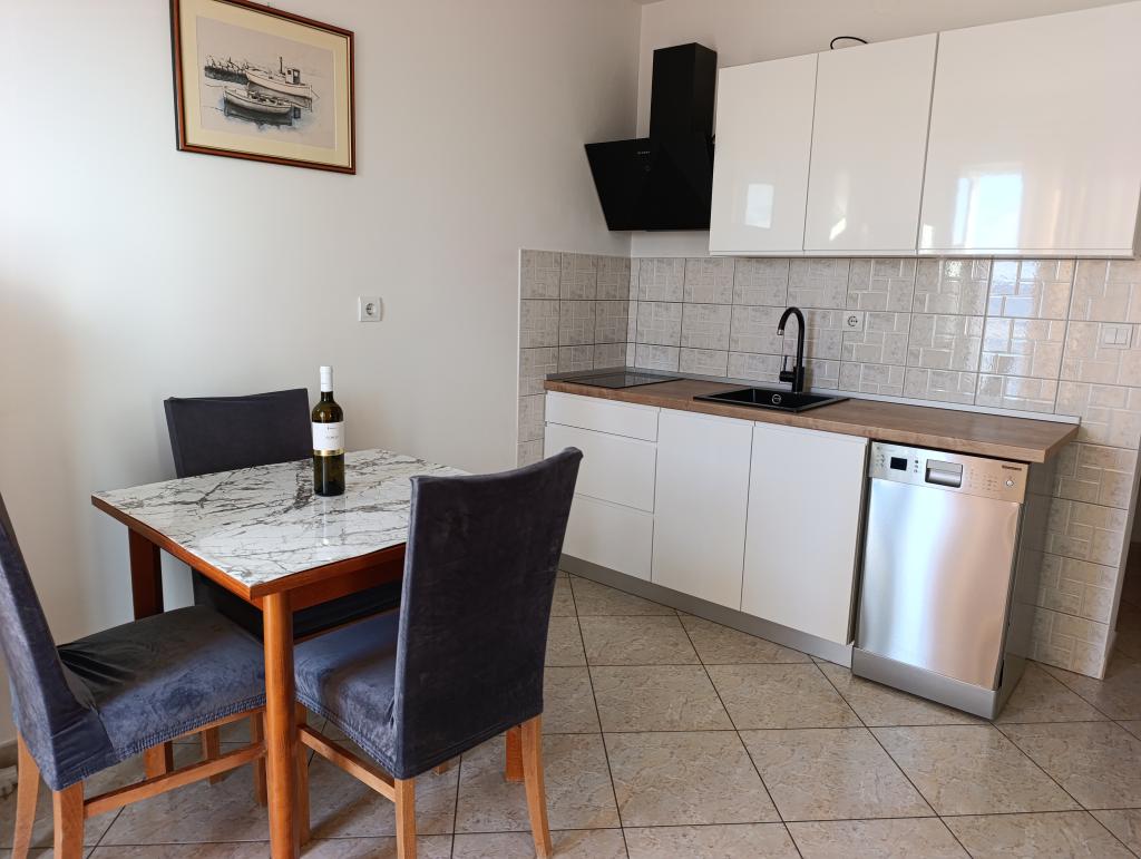 Un grande appartamento, pulito, profumato e ben attrezzato, perfetto per 4-5 persone. Si compone di 2 camere da letto, 2 bagni (che offre un grande comfort con un numero così elevato di persone, soprattutto una buona opzione per due coppie di sposi) e una cucina (posto letto aggiuntivo).All'esterno, un ampio terrazzo dove è possibile consumare un pasto in silenzio e relax. Il grande vantaggio è la doccia esterna, dove puoi sciacquarti dopo essere venuto dalla spiaggia. La zona è molto calma e tranquilla. Una buona base per le città più grandi vicine.La spiaggia è molto vicina, a circa 50 metri. I proprietari dell'appartamento - Marija e Ante, sono dei padroni di casa molto gentili e cordiali, sempre sorridenti. Consiglio sinceramente a tutti di soggiornare in questo posto. Speriamo di tornare da te per una vacanza un giorno. Grazie per un bel soggiorno.