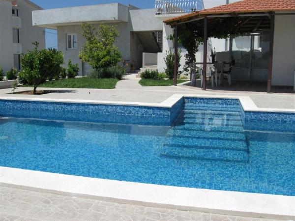 Appartamenti Lucin si trovano sulla costa meridionale della splendida isola di Ciovo. House è una famiglia con due appartamenti. Si trova su 900 m2 di terreno di 400 m2 piscina era 7.50 + 3.50 e una cucina estiva con vasca circondata da verdi piante mediterranee. La cucina è completamente attrezzata per la cottura e la conservazione di ambienti chiusi griglia. La casa si trova a 200 m dal centro ea 500 metri dalla spiaggia. L'isola è circondata da spiagge di sabbia e naturali. Appartamento al primo piano ha due terrazze a 18m2 completamente attrezzata e arredata con vista sul mare e dintorni. Appartamento al piano terra dispone di una terrazza 21 m2 è un disegno po 'più grande con una bella vista sulla piscina in giardino con vista sul mare in lontananza. Siamo a soli 4 km da Trogir, che è sotto patrimonio mondiale dell'UNESCO. Spiaggia è bella e lunga passeggiata che a Trogir e godere passeggiando per le vie della città e visitare musei, programmi di musica, visitando ristoranti con ottima offerta gastronomica della Dalmazia e della gioventù (night club, ecc ..) famiglia Lucin vi invita a trascorrere le vostre vacanza.