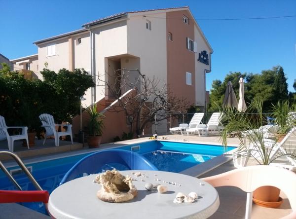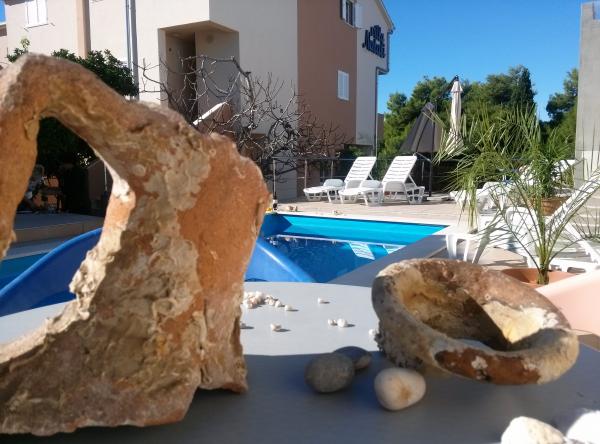 Appartamenti moderni e completamente attrezzati situati nella parte occidentale dell'isola di Ciovo con la sua piscina, solarium, sdraio, barbecue, parcheggio ... vi permetterà un soggiorno piacevole. Prima fila al mare vi stiamo dando la possibilità di frequenti soggiorno sulla spiaggia, che ha un sacco di ombra e di un parco giochi. UNESCO città di Trogir è a soli 2 km, ma abbiamo una linea di navigazione che ti spinge ogni 15 minuti dal centro storico. Per tutti coloro che amano la cultura e l'arte, ma vale la pena vedere Trogir ma se amate la buona cucina, la cucina tradizionale dalmata in molti ristoranti vi delizierà.
