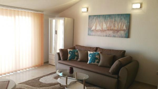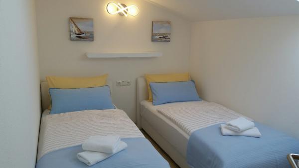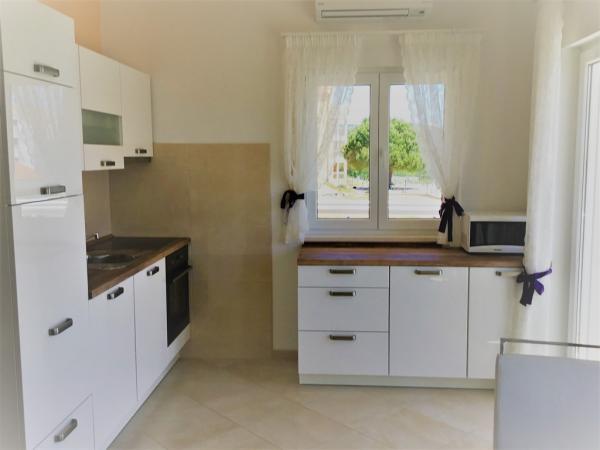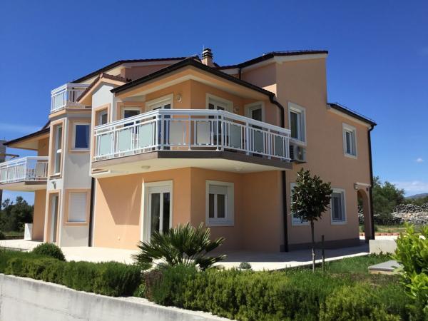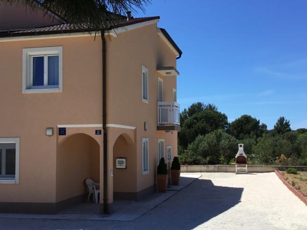 Villa Nikaraoni trova sull'isola di Ciovo vicino a Trogir. Gli appartamenti moderni e completamente attrezzati nella nuova casa con soli 4 appartamenti (piano terra, primo piano e sottotetto). La casa è situata in una tranquilla e soleggiata, con un sacco di verde nel cortile spazioso (1000 m2). Nel cortile sono posti auto e barbecue. I balconi sono spaziose e con vista sul mare. Gli appartamenti sono dotati di cucina nuove e moderne con lavastoviglie, forno a microonde, grande frigorifero, TV satellitare, connessione Wi-Fi gratuita, lavatrice ... Il prezzo comprende biancheria da letto e asciugamani (non spiaggia) e la pulizia.