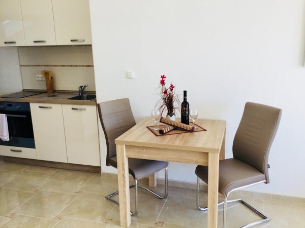 La tassa di soggiorno è inclusa nel prezzo.Vicino alla casa (10-20 min a piedi) ci sono diversi ristoranti con una vasta scelta di varie specialità dalmate. Su una spiaggia di sabbia nel Okrug sta offrendo sport e divertimento in acqua. Gite di un giorno alle isole vicine e parchi nazionali. Nelle vicinanze c'è un centro diving. Per Trogir barche a vela ogni 15-30 minuti durante l'estate. Da Spalato a Trogir vele più volte al giorno in barca (Bura Linea).