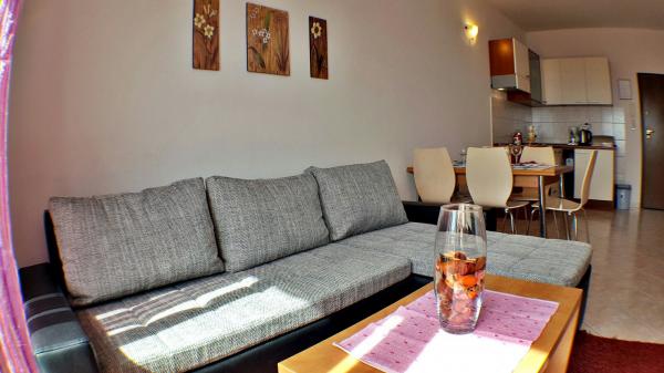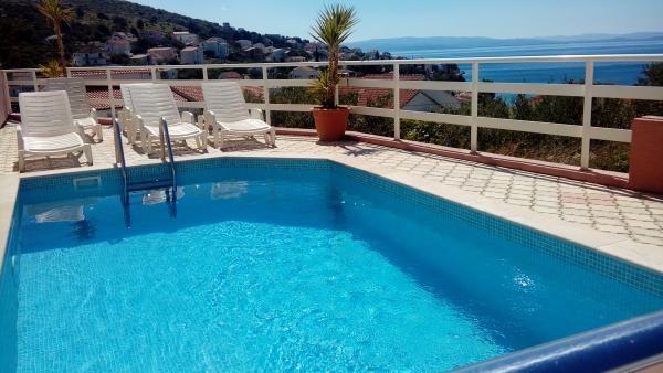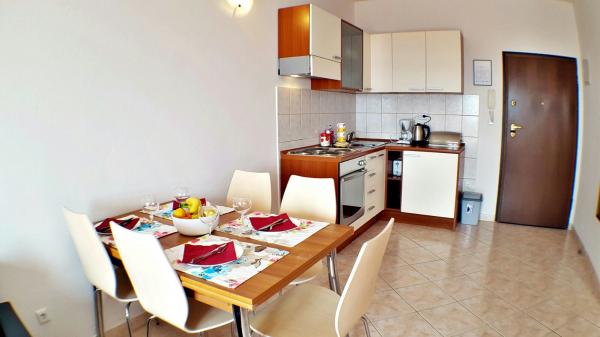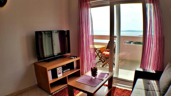 L'appartamento si trova sul lato sud di Ciovo in una tranquilla Mavarcica. Si trova all'ultimo piano di un piccolo edificio. L'appartamento si trova a soli 5 minuti a piedi dalla spiaggia. A parte si compone di una camera da letto con uscita sulla terrazza, cucina, sala da pranzo, soggiorno e bagno con servizi igienici aggiuntivi. L'ampia terrazza offre una vista mozzafiato sul mare e sulle isole vicine. La terrazza è coperta con una tenda. L'appartamento è dotato di aria condizionata. programmi di Wi-Fi e SAT / TV disponibili. Nel letto divano del soggiorno che si trasforma istantaneamente in un letto aggiuntivo. Al piano terra c'è una piscina che è libero di utilizzare e di un ristorante. All'interno dell'edificio è disponibile e il parcheggio è pubblico. A 700 metri dagli appartamenti sono dotati di tutti i servizi (mercato, ufficio postale, mercato). L'appartamento è 3. 6 km dal centro della città. Vicino alla spiaggia c'è un centro immersioni e campi da tennis sono solo 1. 5 km.