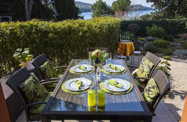 La sistemazione di lusso si trova in una tranquilla zona residenziale della città di Cres, a soli 50 metri dalla spiaggia. L\appartamento di 120 metri quadrati si trova in parte al piano terra. Ha tre camere da letto, un soggiorno a pianta aperta e una cucina e due bagni. Due camere da letto sono arredate con un letto king size (1, 60 m di larghezza), mentre il terzo (1, 90 m 0, 80 x) ha un letto singolo. La zona soggiorno con vista sul mare Adriatico offre un accogliente soggiorno e di una TV a schermo piatto con lettore DVD e impianto stereo. La moderna cucina è completamente attrezzata e ha anche un bancone della cucina come una sala da pranzo. Entrambi i bagni sono dotati di doccia, lavabo, wc e capelli, uno dei quali anche con un bidet. Tutti i locali della vacanza sono riscaldate con riscaldamento a pavimento. Un sistema di aria condizionata fornisce l\ampio soggiorno con cucina a vista per il raffreddamento. Se necessario, è possibile utilizzare la condizione posta dietro una lavatrice divisorio all\ingresso gratuito. L\area esterna completamente recintato con giardino e terrazza è disponibile per l\uso esclusivo, e consente per i bambini e gli animali domestici (su richiesta) un soggiorno sicuro all\aperto. Il terrazzo è attrezzato con mobili da giardino, ombrelloni e lettini e permette una vista sul mare. Per un accogliente barbecue è disponibile un grill a gas professionale. La vostra auto può parcheggiare gratuitamente sul posto auto esterno. Wi-Fi è disponibile gratuitamente in tutta la struttura.
