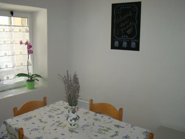 Casa Vacanze Moro si trova in un piccolo villaggio Orlec sull'isola. Situato su tre piani. In un primo momento ci sono da ingresso, soggiorno, cucina, sala da pranzo, servizi igienici, bagno e cucina. Al secondo scale di legno acqua piano e ci sono 3 camere da letto e un bagno. Al terzo piano anche scale di legno di acqua, e v'è una quarta camera da letto e una sala per il relax, riposo e divertimento, che è dotato di giochi da tavolo. Da questa stanza si può andare alla terrazza che ha una splendida vista del villaggio, il mare e le isole circostanti. Ci sono due condizionatori d'aria in grado di raffreddare tutta la casa. La casa è inoltre dotata di TV satellitare e Internet. Il cantiere è un tavolo in pietra con sedie e barbecue.