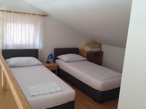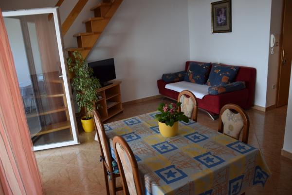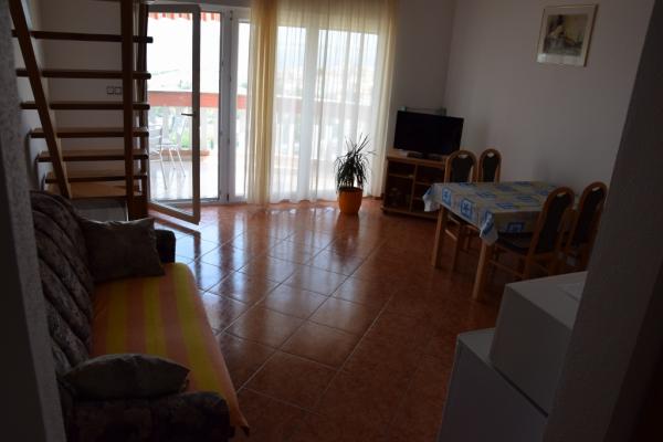 Appartamenti confortevoli e funzionali si trovano in una città che è famosa per le sue spiagge sabbiose e clima mite. Una parte particolarmente interessante l'appartamento è composto da gallerie, situati sopra i salotti che sono raggiungibili da scale dove ha anche posto la zona notte. L'altezza minima del tetto è di 120 cm di gallerie. Entrambi gli appartamenti dispongono di parcheggio privato. Entrambi gli appartamenti offrono una magnifica vista sul centro di Crikvenica e del Quarnero. Non vediamo l'ora di vedervi.