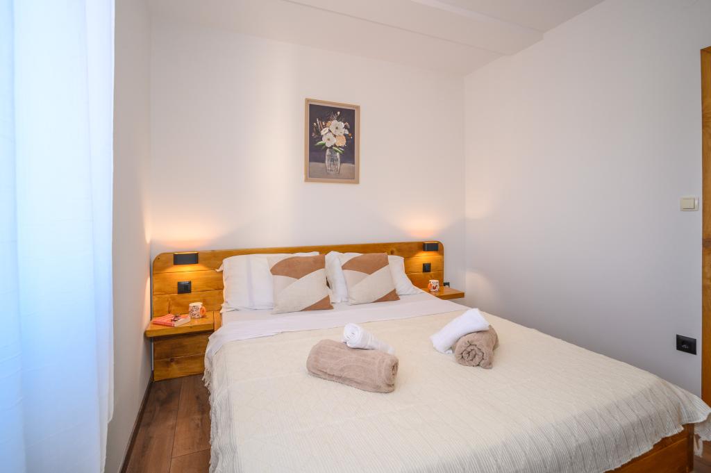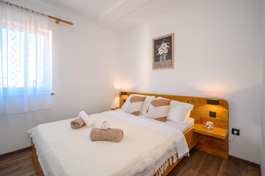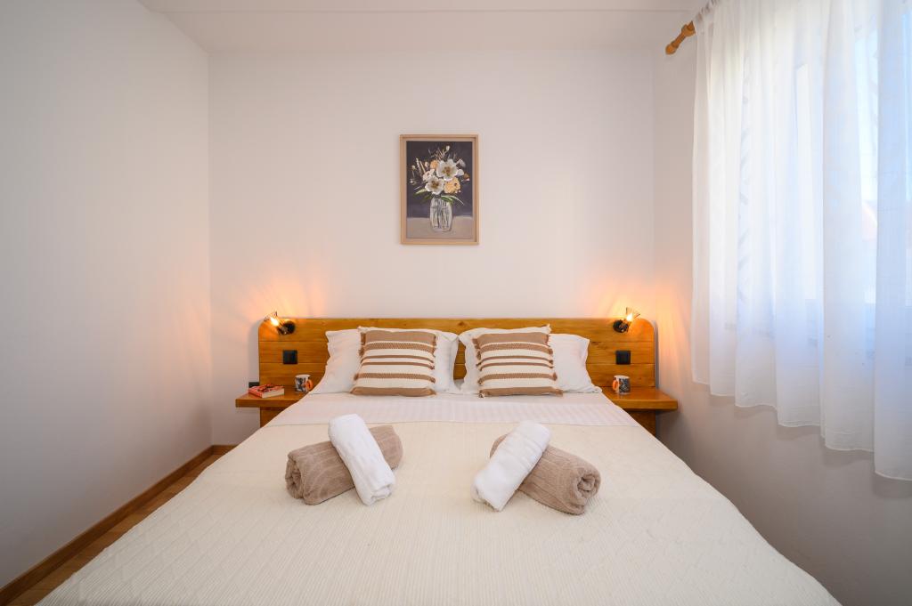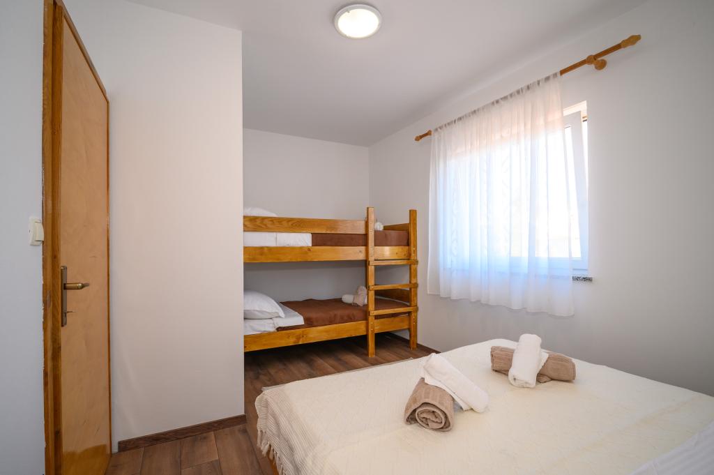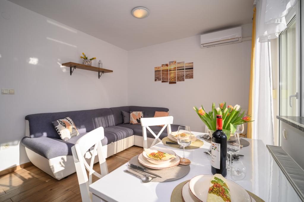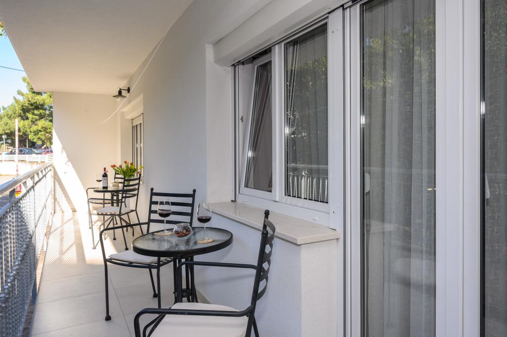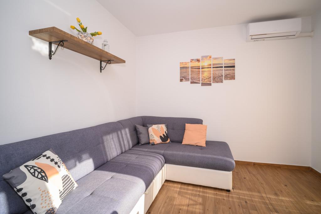 Appartamenti in posizione tranquilla, a soli 50 m dalla spiaggia e a 100 m da altri servizi come ristorante, negozio, parco giochi per bambini e campo sportivo. Ogni appartamento dispone di un proprio parcheggio e gli ospiti hanno accesso a un barbecue e a un'ampia terrazza. Il prezzo di affitto include Wi-Fi, aria condizionata e TV satellitare. Gli appartamenti sono nuovi, moderni e arredati in modo confortevole e offrono una vacanza ideale senza la necessità di utilizzare l'auto.