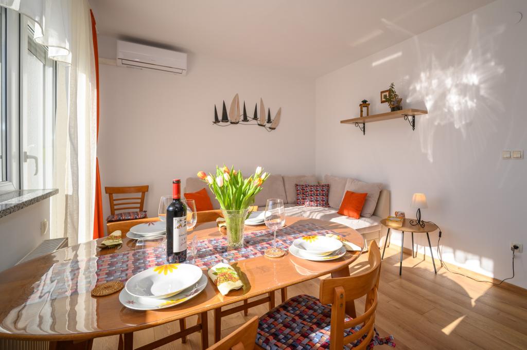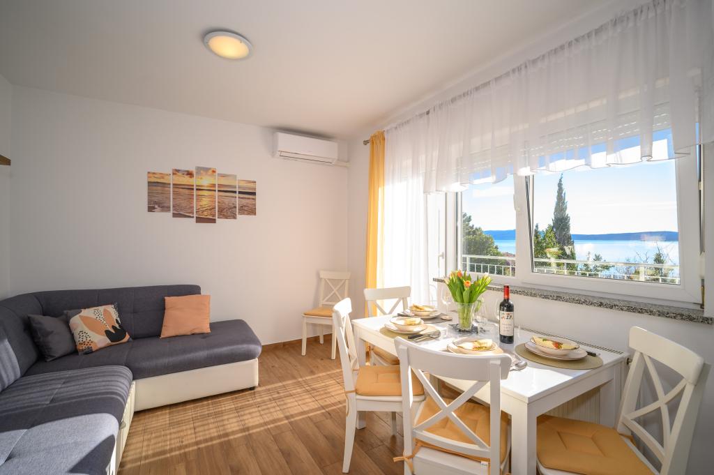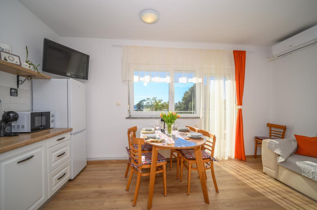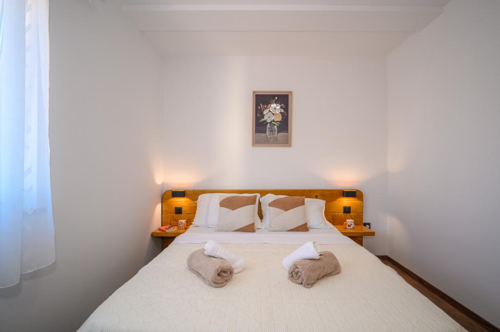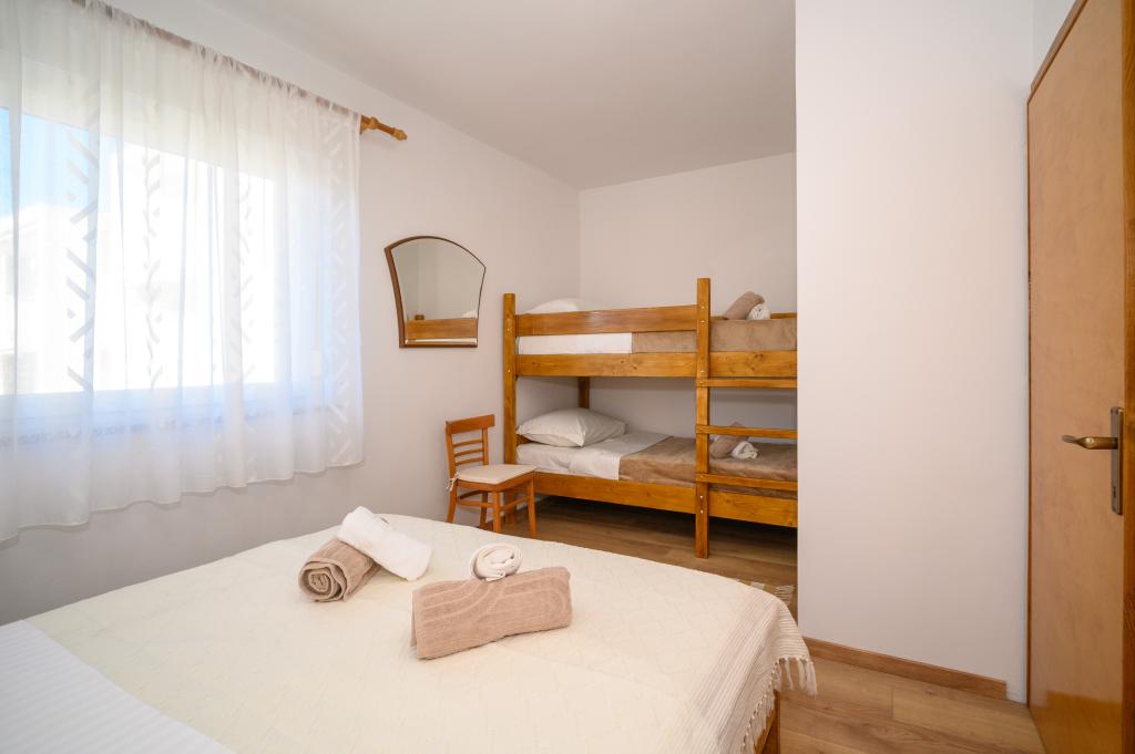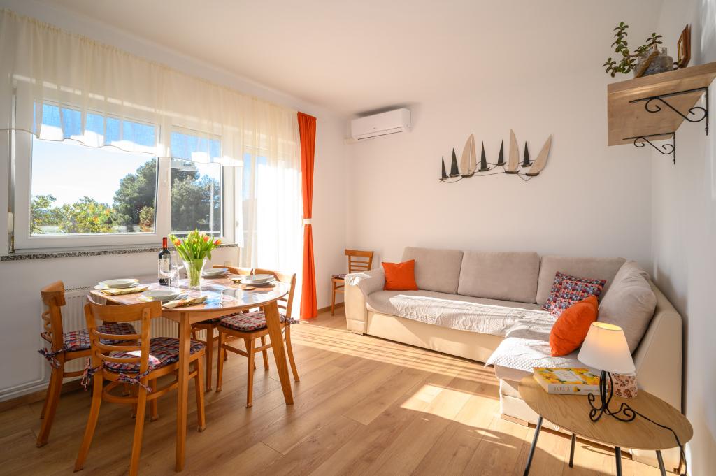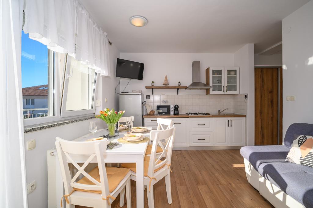 Appartamenti in posizione tranquilla, a soli 50 m dalla spiaggia e a 100 m da altri servizi come ristorante, negozio, parco giochi per bambini e campo sportivo. Ogni appartamento dispone di un proprio parcheggio e gli ospiti hanno accesso a un barbecue e a un'ampia terrazza. Il prezzo di affitto include Wi-Fi, aria condizionata e TV satellitare. Gli appartamenti sono nuovi, moderni e arredati in modo confortevole e offrono una vacanza ideale senza la necessità di utilizzare l'auto.