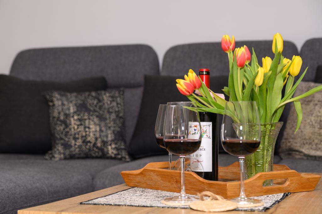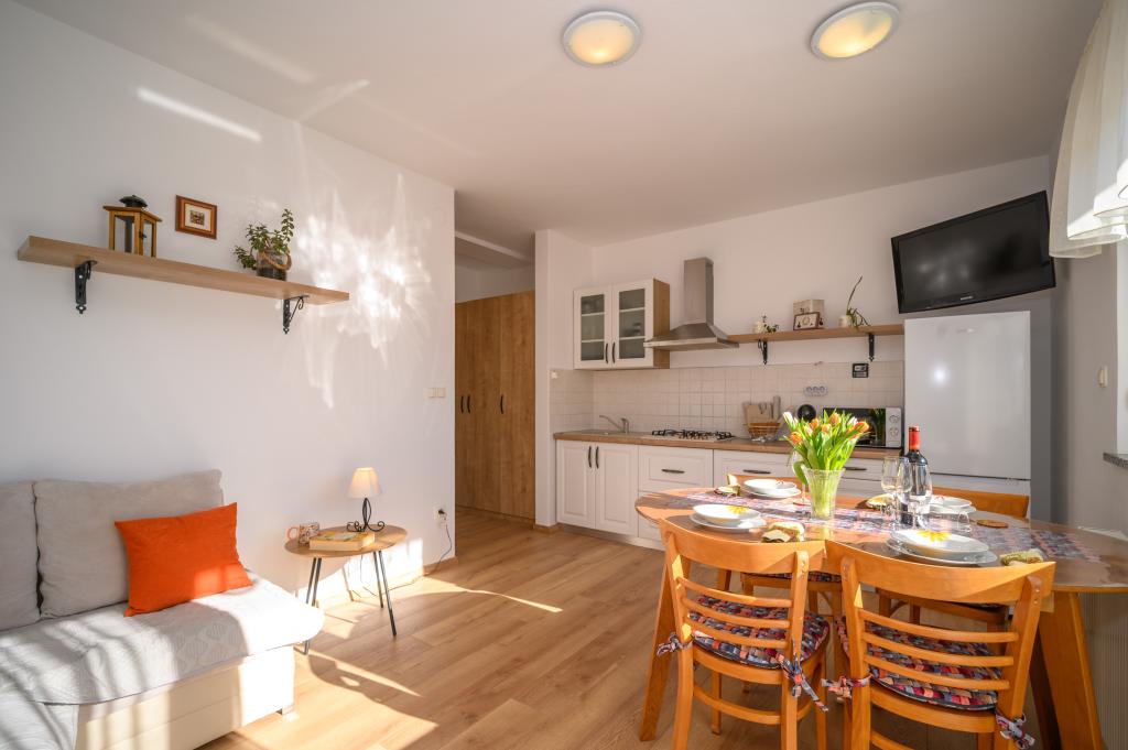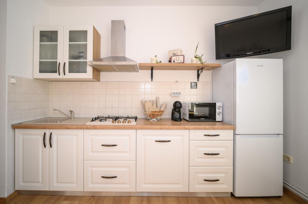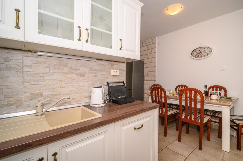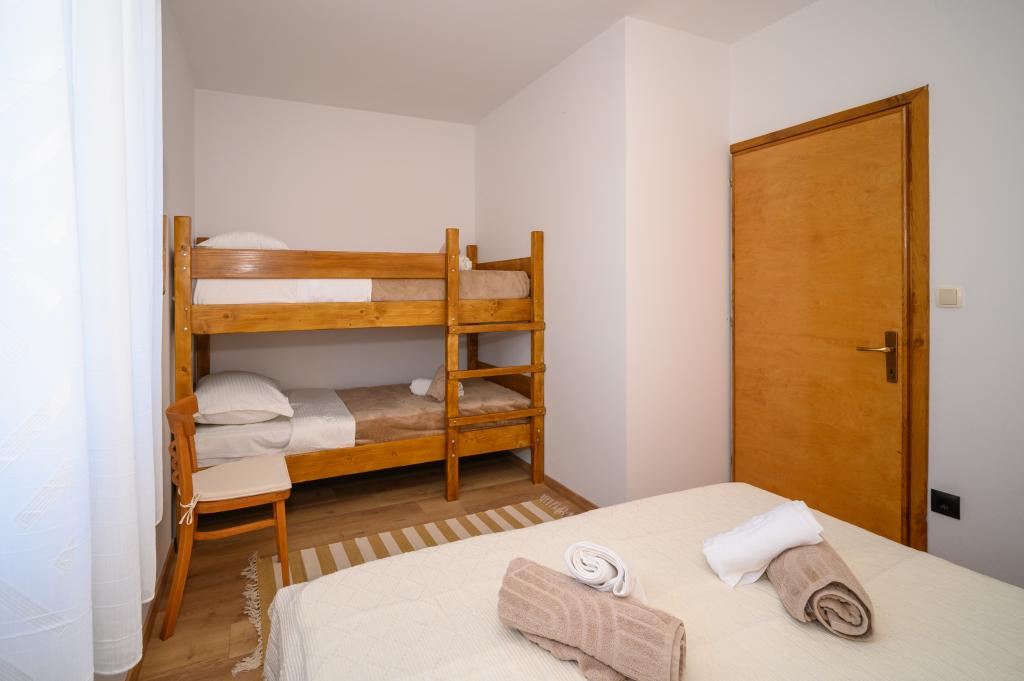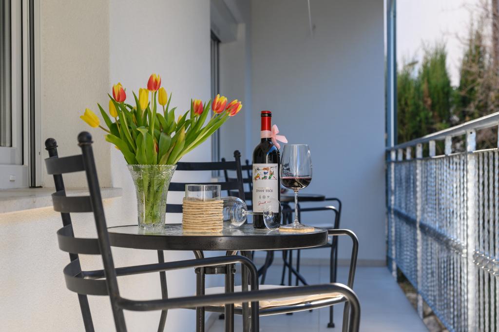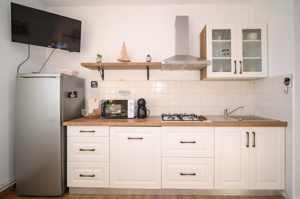 Appartamenti in posizione tranquilla, a soli 50 m dalla spiaggia e a 100 m da altri servizi come ristorante, negozio, parco giochi per bambini e campo sportivo. Ogni appartamento dispone di un proprio parcheggio e gli ospiti hanno accesso a un barbecue e a un'ampia terrazza. Il prezzo di affitto include Wi-Fi, aria condizionata e TV satellitare. Gli appartamenti sono nuovi, moderni e arredati in modo confortevole e offrono una vacanza ideale senza la necessità di utilizzare l'auto.