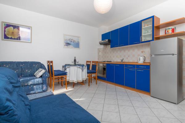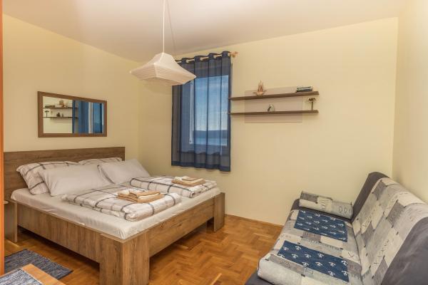 Appartamento Adria LiLa è arredato e attrezzato per soddisfare le esigenze di un ospite contemporaneo. Si trova nella parte tranquilla di Dramalj, un'affascinante località turistica, a 3 km dal centro di Crikvenica. La più vicina spiaggia di ciottoli di Pazdehova si trova a 300 metri di distanza, mentre la spiaggia naturale più famosa di Kačjak è raggiungibile in 20 minuti a piedi o in 1 km in auto. L'appartamento ha l'ingresso principale dal lato nord che si trova al livello dell'appartamento situato al 3 ° piano dell'edificio. L'appartamento è composto da una cucina completamente attrezzata con un soggiorno, una camera da letto confortevole (160x200 letto) e un divano letto, un letto aggiuntivo nel soggiorno per 2 persone, un bagno e una loggia a castello con una splendida vista sul mare, la penisola di Kačjak e l'isola di Krk . L'appartamento è dotato di aria condizionata, TV SAT, connessione internet wireless Wi-Fi, e di fronte all'edificio è il proprio spazio di parcheggio.