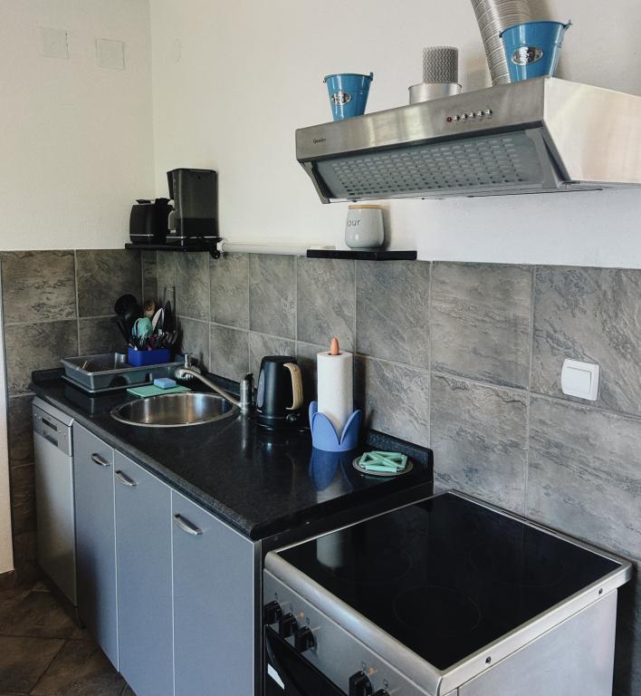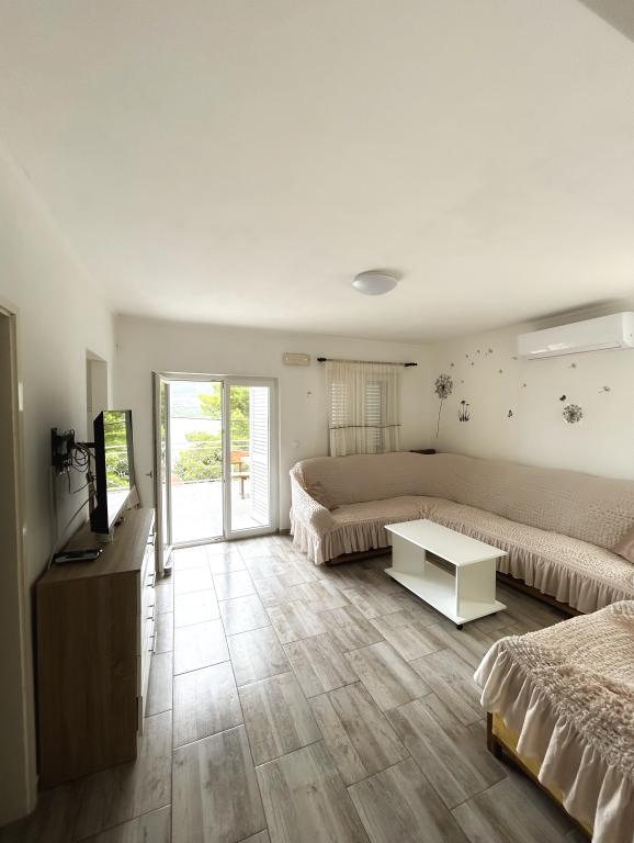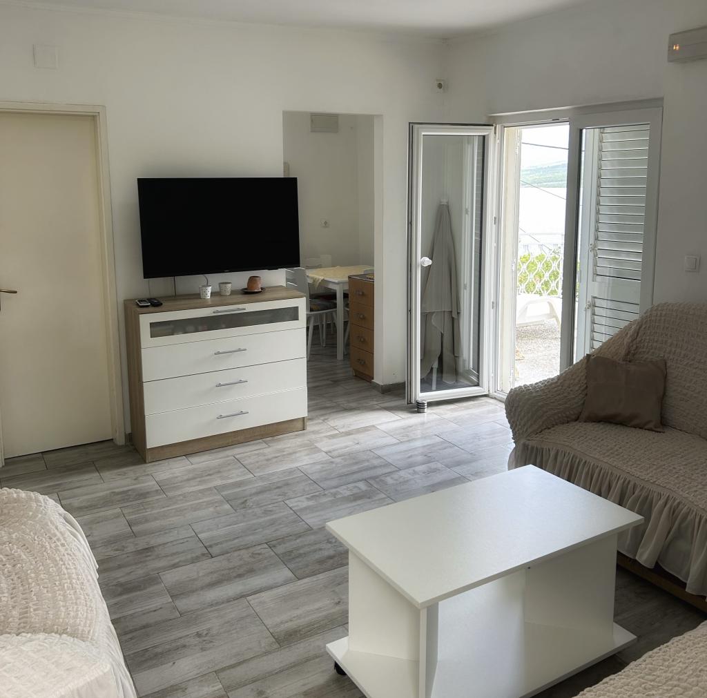 Grazioso appartamento, ben arredato (compreso forno e lavastoviglie), balcone con splendida vista e terrazza all'ombra! Padroni di casa cordiali, bellissima spiaggia. Lo consiglio vivamente, soprattutto per le vacanze con un animale domestico, che è molto gradito agli Apartments Nina.