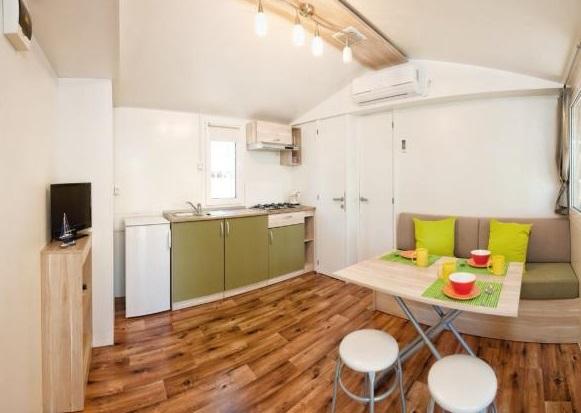 Casa mobile climatizzata a 30 m dal mare con 2 camere da letto, cucina, 2 bagni, soggiorno, terrazzo, parcheggio, doccia esterna, grill, sdraio e parcheggio privato. Sono ammessi animali domestici.