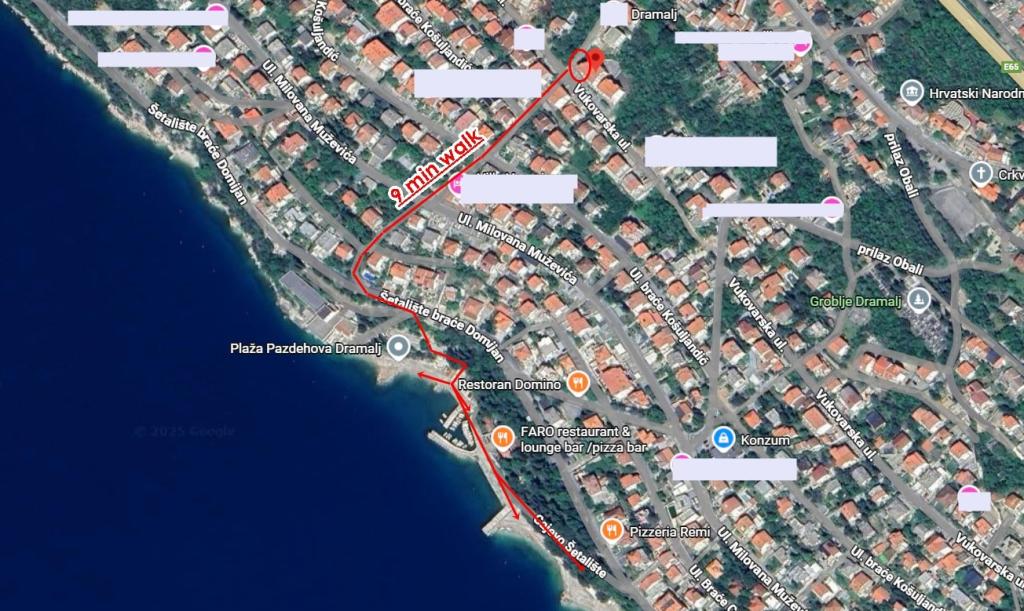 L'appartamento Lovor si trova in una zona tranquilla di Dramalj, a 450 metri (circa 10-15 minuti a piedi in discesa) dal mare e dalle spiagge e a 1,5 km (circa 20 minuti a piedi) dal centro di talassoterapia di Crikvenica. Il parcheggio è disponibile nel cortile dell'edificio (1 posto auto). Dramalj è una località turistica collegata a Crikvenica tramite un lungomare e si estende fino alla penisola di Kačjak. La località offre diverse spiagge ben tenute con vari servizi, alcune delle quali hanno vinto premi per le spiagge meglio curate. L'appartamento Lovor si trova al piano terra di un edificio residenziale e ha una superficie di 31 m² con terrazza. L'appartamento è composto da una camera da letto con letto matrimoniale 160x200, una cucina (in cucina troverete un frigorifero con congelatore, un piano cottura elettrico, un bollitore, una macchina da caffè americano e tutti gli utensili necessari per cucinare) con un soggiorno (divano letto supplementare 110x200, TV), un bagno con doccia e, naturalmente, una terrazza. L'appartamento è dotato di aria condizionata e accesso gratuito a internet (Wi-Fi).
