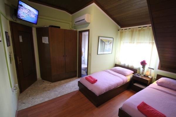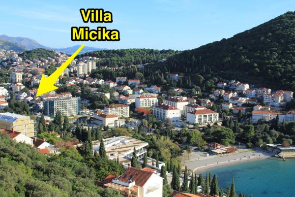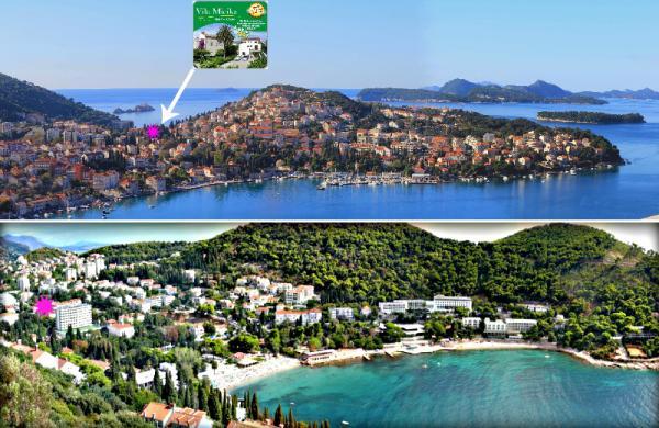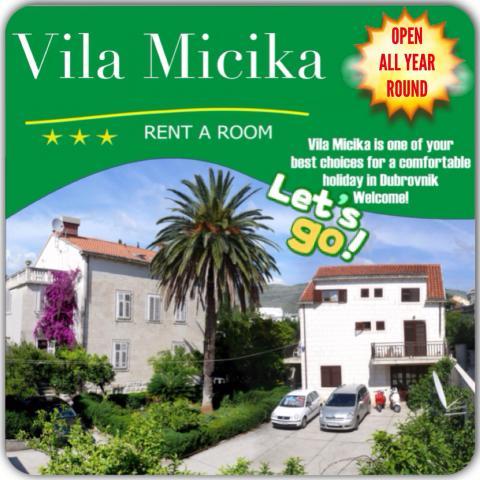 Villa Micika è la soluzione migliore per una piacevole vacanza a Dubrovnik. Aperto tutto l'anno, durante il periodo natalizio, le vacanze di Pasqua e le vacanze, Villa è adatta sia per uomini d'affari che per turisti. La villa si trova nel tranquillo centro di Dubrovnik chiamato Lapad, circondato da palme e altra vegetazione mediterranea. Dista solo 300 m dalla spiaggia principale e 10 m dai campi da tennis. Dispone di 8 camere suddivise in 3 stelle. Le camere hanno una capacità di 12-15m2 e dispongono di 8 letti matrimoniali e consentono una sistemazione totale per 16 persone. La proprietà è separata e si trova su due piani. Tutte le camere hanno una vista di splendide aree verdi e sono dotate di bagno, doccia, WC, TV-SAT, aria condizionata e tutte le camere hanno un sistema di riscaldamento centralizzato. All'interno della proprietà c'è una terrazza comune e il proprio parcheggio fuoristrada